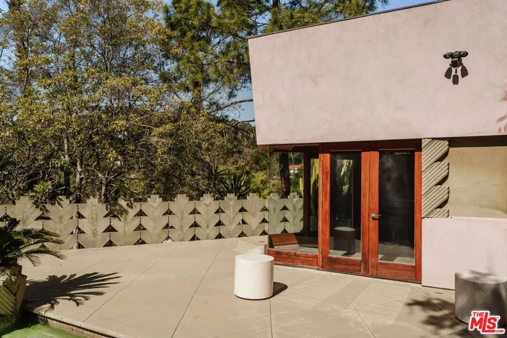 A once-in-a-lifetime opportunity to acquire the legendary David Lynch Compound: a private 2.3-acre hillside enclave that unites architectural pedigree, cultural history, and cinematic mythology in the heart of the Hollywood Hills. Anchoring the estate is the Beverly Johnson House, designed in 1963 by Lloyd Wright, son of Frank Lloyd Wright. Recognized by Historic Places LA as an “excellent example of Mid-Century Modern/Organic residential architecture,” the house embodies the drama of hillside modernism with bold geometry, walls of glass, and a seamless flow between indoors and out. Over the years, Lynch expanded the property into a true compound by acquiring the two neighboring residences on Senalda Drive. At 7029 Senalda, he established the address for his production company, Asymmetrical Productions. At 7035 Senalda, he found cinematic inspiration in the home, later immortalized on screen as the Madison residence in Lost Highway (1997), which includes Lynch’s private editing suite and screening room. Lynch commissioned Eric Lloyd Wright in 1991 to design a pool and pool house, extending the site’s rare multi-generational Wright lineage. The director also collaborated on the creation of additional structures on the property, including a two-story guest house and another unique one-bedroom living space finished in his favored smooth grey plaster. Together, the three residences and ancillary structures form a cohesive, secluded compound of 5 contiguous parcels. A creative sanctuary and architectural landmark offered with a provenance unlike any other in Los Angeles.