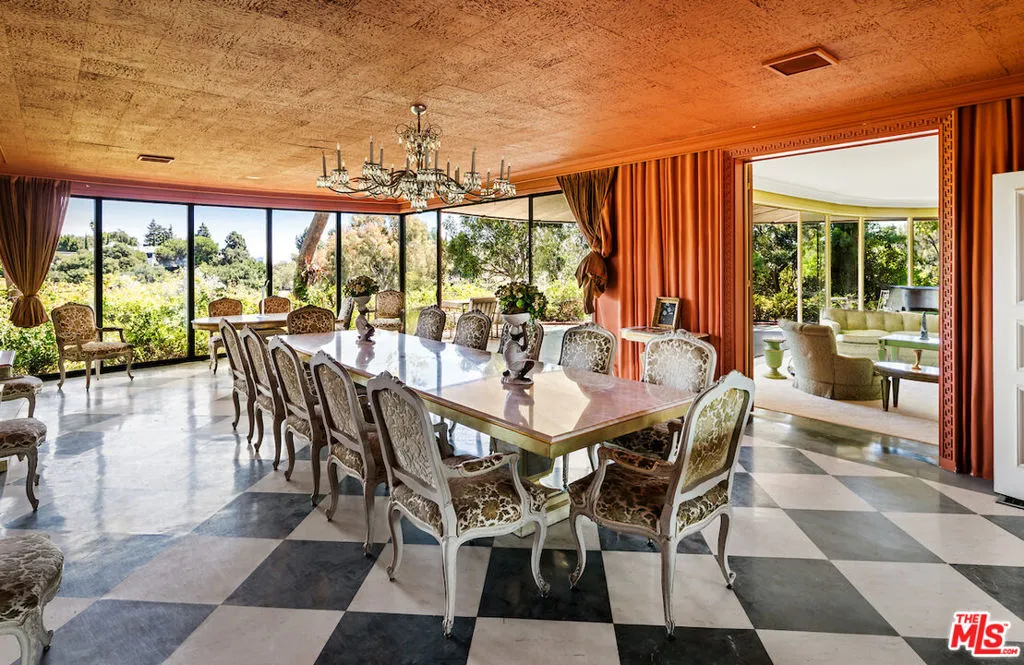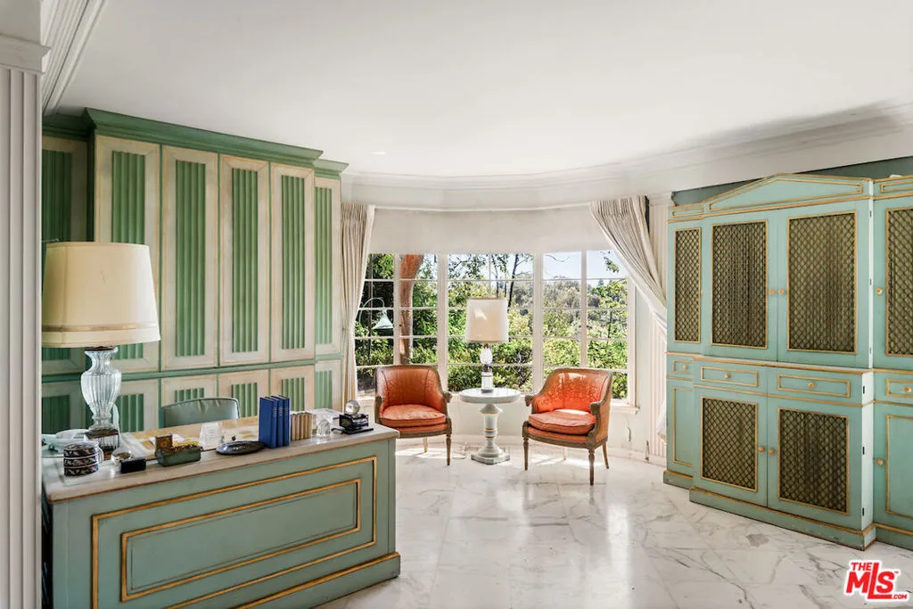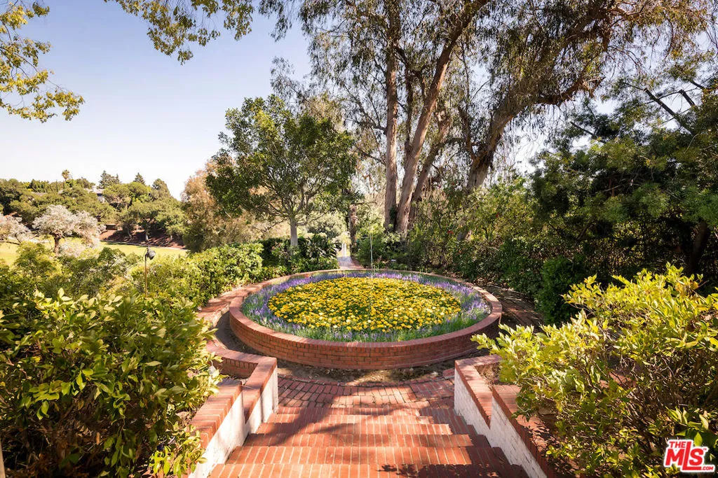 “Casa Contenta” FIRST TIME ON THE MARKET IN THREE QUARTERS OF A CENTURY. Situated on nearly two acres, “mostly usable” (three legal lots) in prime lower Bel Air, this distinguished championship tennis court estate is privately positioned behind gates and located up a city-block-long private driveway. The property offers total seclusion, with expansive views of the esteemed Bel Air Country Club Golf Course, overlooking the 15th green. This championship tennis court estate features a circular motor court, swimmer’s pool, screening room, two guest houses, and a staff wing all of the attributes of a proper world-class estate. With a reputation that precedes it, this Casa Contenta has hosted royalty, presidents, politicians, and notables for decades. Built with exceptional attention to detail and scale, the estate truly epitomizes classic Bel Air Regency architecture while providing a remarkable opportunity to reimagine. The main residence, spanning just under 8,200 square feet, offers a grand formal living room, library, magnificent dining room adorned with marble floors, a gourmet chef’s kitchen with a butler’s pantry, second-story den with a bar, and nine bedrooms. Separately tucked away is a two-bedroom guest house on the upper level and a stately ballroom on the lower level once home to lavish gatherings and screenings totaling just over 2,700 square feet of additional living space. An additional guest house and greenhouse are framed by lush greenery. The park-like grounds include an expansive patio with a barbecue, impeccable brick-lined pathways, and abundant floral displays.