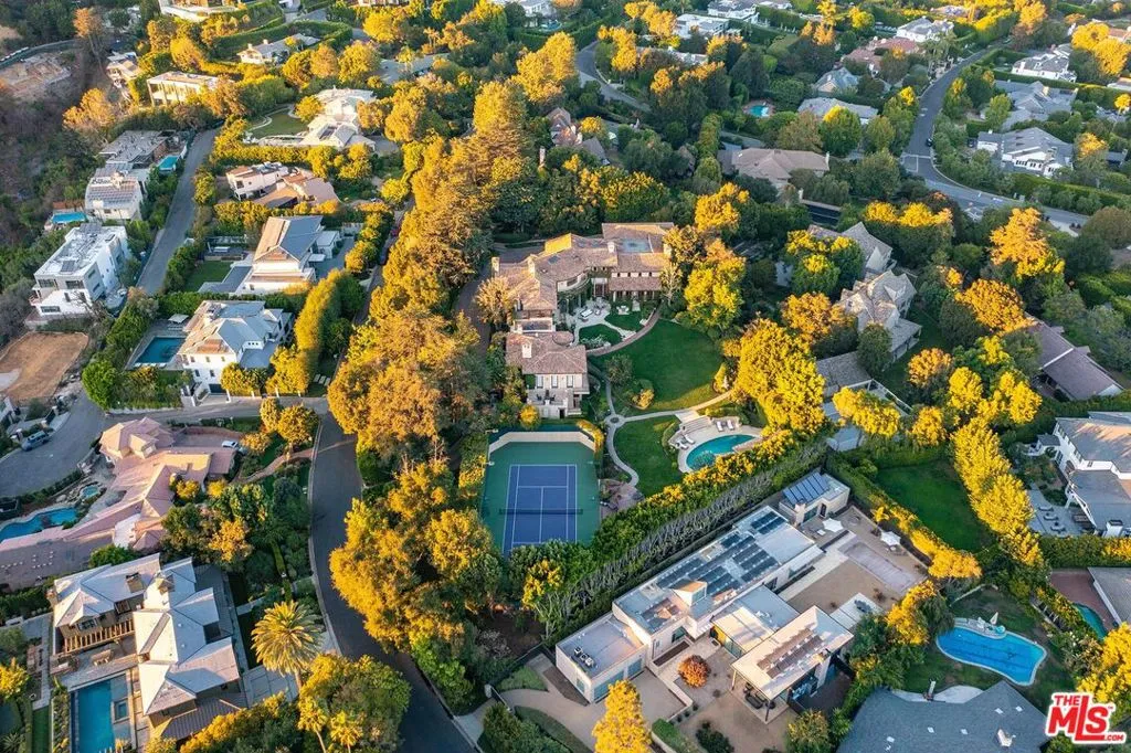 The Leonard Estate stands as the most important legacy property on the Westside – an extraordinary Italian villa of rare scale and pedigree, available once in a generation. Envisioned by world-renowned architect Richard Landry, this Florentine-inspired masterpiece was crafted with only the finest materials and exudes timeless elegance. Perched on nearly two acres of expansive, park-like grounds within the prestigious Palisades Riviera, the estate is hidden behind double gates, towering hedges, and a long private driveway, ensuring complete privacy and security. The ivy-clad facade opens to a grand motor court and sets the stage for over 16,700 square feet of exquisitely designed interiors. Vaulted ceilings, generous proportions, and seamless indoor-outdoor flow create a setting that is equally suited for intimate living or entertaining on a grand scale. The main residence features a dramatic two-story family room, a refined formal living room and dining room, a solarium, a gourmet kitchen with professional appliances and center island, and multiple wings devoted to leisure and entertaining, including a screening room, media room, and gym. There are seven bedrooms in total, with the primary suite serving as a private retreat offering a fireplace, spa-like bath, dressing rooms, and a terrace overlooking breathtaking ocean, canyon, and mountain views. The grounds are a world unto themselves: a sun-drenched oval pool and spa, lit tennis court with viewing pavilion, rolling lawns, meadow, putting green, and lush gardens framed by mature trees. A full two-story guesthouse adjacent to the pool includes a kitchen and guest accommodations, ideal for hosting visitors or poolside gatherings. The Leonard Estate is a true world-class residence that combines European romance with modern luxury, offering both sumptuous and serene living on one of the Riviera’s most coveted streets.