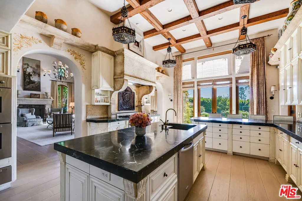 The Leonard Estate stands as the most important legacy property on the Westside – an extraordinary Italian villa of rare scale and pedigree, available once in a generation. Envisioned by world-renowned architect Richard Landry, this Florentine-inspired masterpiece was crafted with only the finest materials and exudes timeless elegance. Perched on nearly two acres of expansive, park-like grounds within the prestigious Palisades Riviera, the estate is hidden behind double gates, towering hedges, and a long private driveway, ensuring complete privacy and security. The ivy-clad facade opens to a grand motor court and sets the stage for over 16,700 square feet of exquisitely designed interiors. Vaulted ceilings, generous proportions, and seamless indoor-outdoor flow create a setting that is equally suited for intimate living or entertaining on a grand scale. The main residence features a dramatic two-story family room, a refined formal living room and dining room, a solarium, a gourmet kitchen with professional appliances and center island, and multiple wings devoted to leisure and entertaining, including a screening room, media room, and gym. There are seven bedrooms in total, with the primary suite serving as a private retreat offering a fireplace, spa-like bath, dressing rooms, and a terrace overlooking breathtaking ocean, canyon, and mountain views. The grounds are a world unto themselves: a sun-drenched oval pool and spa, lit tennis court with viewing pavilion, rolling lawns, meadow, putting green, and lush gardens framed by mature trees. A full two-story guesthouse adjacent to the pool includes a kitchen and guest accommodations, ideal for hosting visitors or poolside gatherings. The Leonard Estate is a true world-class residence that combines European romance with modern luxury, offering both sumptuous and serene living on one of the Riviera’s most coveted streets.