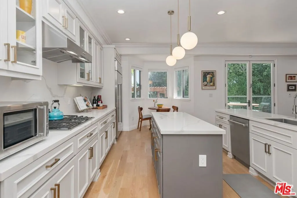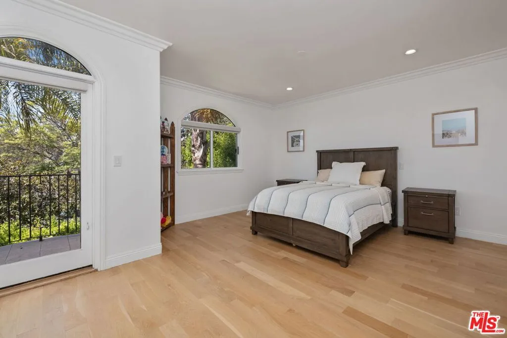Stunning newly remodeled Spanish 5 bed/4.5 bath 2-story in desired mid-block, prime Century City Adjacent location. Privately hedged and gated front yard leads to beautiful open floor plan with dramatic high ceilings, large skylights providing an ambundance of natural light. Living room with marble front fireplace opens to spacious formal dining room with soffit ceilings and arched entrance. Inviting family room with fireplace, built-ins and bi-fold doors leading to entertainer’s back deck, pool/spa, lower deck with veranda and firepit area. Newly finished chef’s kitchen with center island, quartz countertop and newer high-end appliances including Wolf range and double ovens, Sub Zero refrigerator and contemporary quartz countertops. 1 bedroom downstairs with ensuite bath and 4 additional bedrooms upstairs including oversized primary suite with fireplace, French doors to balcony with treetop views, 2 custom built walk-in closets and sunfilled beautifully finished spa-like primary bathroom with soaking tub, separate steam shower and dual basins. 3 additional bedrooms including 2 front facing bedrooms with step-out balconies. Features include dual-zoned central ac/heat, beautiful newer French oak hardwood flooring throughout, all newly remodeled bathrooms, and laundry room with storage upstairs. Ideal proximity to Westfield Century City Mall, Beverly Hills and UCLA. Westwood Charter School.