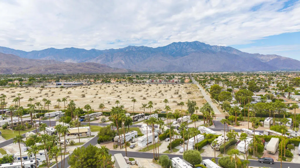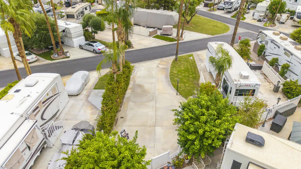 This beautifully maintained interior lot is ideally located near El Saguaro Clubhouse and Satellite D, offering both convenience and serenity. Mature hedging on the patio side and rear enhances privacy, creating a peaceful outdoor retreat. Patio furniture and umbrellas included! This is LOT ONLY Outdoor Resorts Palm Springs is a Five Star RV Resort Community combining luxury with affordability. It is a guard gated resort that sits on 137 beautifully landscaped acres with 27 holes of executive golf, 10 tennis courts, 13 pickleball courts, 8 swimming pools, a fully equipped fitness center, espresso bar, sports bar, beauty salon/barber shop, full-service restaurant, convenience store, 2 club houses, activities, special events and so much more.