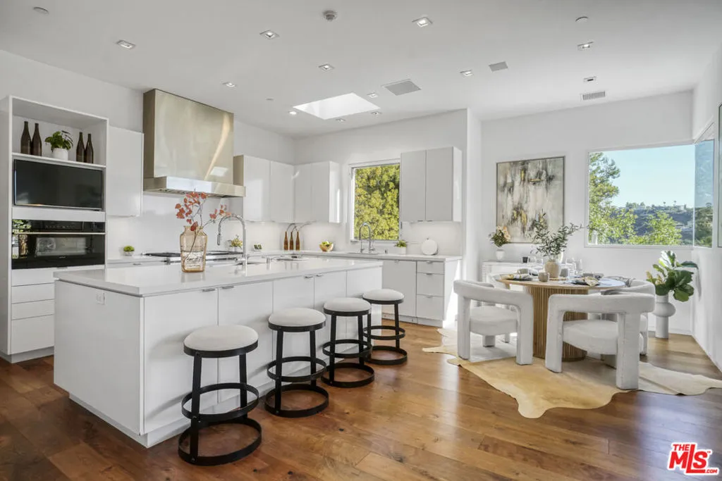 Sophisticated architectural residence in prime Bel Air with approx. 5,290 sq.ft., 5 bedrooms, 5.5 bathrooms, and full Control4 automation. Set on a rare flat pad with dual-sided views of the Pacific Ocean and the tranquil Bel Air canyons, this home offers seamless indoor-outdoor living and entertaining. A dramatic 20+ foot entry opens to an airy open floor plan with expansive living and dining areas, wide-plank wood floors, and walls of glass that frame lush views. The gourmet chef’s kitchen features an oversized island, skylights, and direct flow to the dining and lounge spaces. Additional amenities include a home theater, gym, study, bar, and game area, while both the primary suite and living room enjoy fireplaces. The resort-style backyard is an entertainer’s dream, complete with a sparkling pool and spa, expansive grassy yard, firepit lounge, and an outdoor dining loggia with a built-in BBQ kitchen. Multiple patios and terraces capture sweeping canyon and city vistas, while a private sports court offers both a basketball court and space for pickleball, providing year-round recreation. Ideally located just minutes to Sunset Blvd, the 405 Freeway, the Getty Center, and blocks from the prestigious John Thomas Dye School, this rare offering combines scale, privacy, and sophistication for the ultimate California lifestyle.