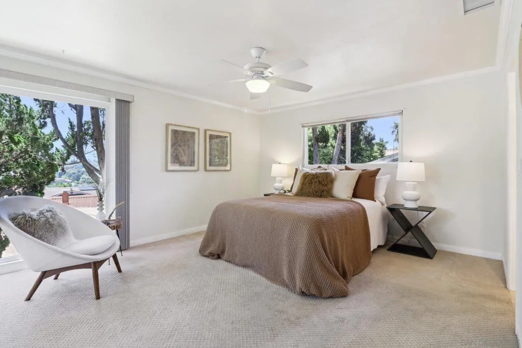 Welcome to 2090 Alta Vista Drive—an incredibly rare 7-bedroom, 5-bathroom home offering 4,500 sqft of living space on a spacious 9,466 sqft corner lot in a quiet and serene Vista neighborhood. Thoughtfully designed for multigenerational living, this property features dual primary suites—one on each level, two full kitchens, and oversized bedrooms perfect for flexible family arrangements or hosting guests. The freshly remodeled upstairs kitchen showcases brand-new soft-close cabinets, sleek quartz countertops, and stainless steel appliances. Throughout the home, you’ll find laminate and carpet flooring, new dual-pane windows, new sliding doors, and an abundance of natural light that enhances the peaceful, private atmosphere. Enjoy beautiful mountain and park views from various vantage points on the property. The home is equipped with owned solar, a new roof, whole-house water filtration system, and a new electrical panel, providing energy efficiency and peace of mind. The attached 2-car garage includes custom high-end storage cabinets, and the separate garage structure offers a unique opportunity to build an ADU above, creating potential rental income or additional living space. Set among lush landscaping, this beautifully maintained property is tucked into a tranquil residential area—yet it’s just minutes from major retailers, restaurants, and everyday conveniences. Whether you’re looking for a multi-family compound, a large forever home, or an income-generating investment, 2090 Alta Vista Dr delivers space, versatility, and unbeatable value.