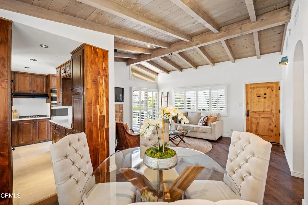 Beach House with LEGAL JR ADU – Discover Your Dream Home in Hollywood Beach! Welcome to this exceptional coastal retreat with breathtaking ocean views and an unbeatable location–just steps from the sand and a short stroll to the harbor for all your boating adventures.The first floor features a legal ADU, perfect for guests or generating rental income. This inviting space includes a cozy living area, full bedroom, and bathroom. Gorgeous wood flooring and a warm gas fireplace create a welcoming atmosphere. The kitchenette is outfitted with a wet bar, 805 kegerator, sink, refrigerator, elegant cabinetry, natural wood beams, and a built-in breakfast bar. Sliding glass doors lead to a private outdoor oasis with a rock fireplace and BBQ–ideal for family dinners and entertaining.On the second floor, you’ll find two additional bedrooms and two bathrooms. Vaulted open-beam ceilings, wood flooring, and another fireplace add warmth and character. A spacious front deck invites you to relax and soak in the views. The kitchen showcases custom cabinetry, quartz countertops, and tile flooring, plus a convenient office/desk area that makes working from home a breeze. The primary suite boasts generous closet space and a spa-inspired bathroom with soaking tub and dual-head shower.Head up to the rooftop deck to experience sweeping panoramic views and stunning sunsets. Whether entertaining friends or simply unwinding after a beach day, this is the perfect spot.Located within walking distance of local restaurants and the farmers market, this property is the ultimate beach lifestyle investment. Live in the main residence while enjoying income from the ADU–or create your own multi-generational retreat.Experience the beauty of Hollywood Beach, where every day feels like a vacation. Don’t miss this rare opportunity to own a true slice of paradise!