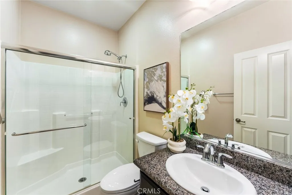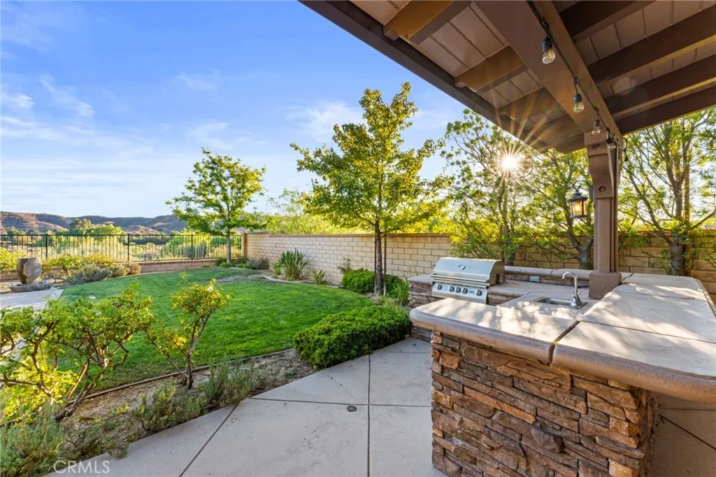 Welcome to Brightwood Place, a stunning NextGen home in one of Santa Clarita’s most sought-after newer neighborhoods – built in 2013, but no Mello Roos! Nestled in a quiet cul-de-sac, this expansive residence offers 4 bedrooms, 4 bathrooms, a 3-car garage, and a private ground-level NextGen suite with separate kitchen—perfect for multigenerational living or generating rental income at market rates of $2,200+ per month. A charming front courtyard, surrounded by lush greenery and a serene sitting area, provides a warm welcome before stepping into the inviting front family room that seamlessly introduces the home’s open-concept design. The gourmet kitchen is a chef’s dream, featuring an oversized granite center island, stainless steel appliances, a walk-in pantry, and recessed lighting. Plantation shutters throughout add a touch of sophistication, while the spacious dining and living areas showcase a cozy fireplace framed with stacked stone and a matching stone mantel—creating an elegant yet inviting space for gatherings. Upstairs, a grand loft offers endless possibilities as a home office, gym, second living area, or an easy conversion into a fifth bedroom. The expansive primary suite boasts breathtaking views and a spa-like ensuite with a soaking tub, separate standing shower, dual vanities, an additional makeup vanity, and a generous walk-in closet. Thoughtfully designed for convenience, this home features wide doorways, spacious secondary bedrooms with custom-built closet shelving, and an upstairs laundry room with abundant linen storage. The private NextGen suite, located on the first floor with its own entrance, offers a bedroom, full bathroom, kitchenette, dining area, laundry, and living space—along with sliding glass doors that open to breathtaking backyard views. This retreat is ideal for guests, extended family, or rental opportunities. Step outside to a backyard oasis designed for both relaxation and entertainment. A sprawling covered patio with a built-in fireplace sets the stage for cozy evenings, while the fully equipped BBQ island—complete with a sink and refrigerator—makes hosting effortless. A picturesque pergola with a second gas fireplace overlooks the serene, undeveloped landscape, enhancing the tranquil ambiance of this exceptional outdoor space. This energy-efficient home is equipped with fully owned and upgraded solar panels (14), a tankless water heater, and AT&T fiber internet with CAT5 wiring.