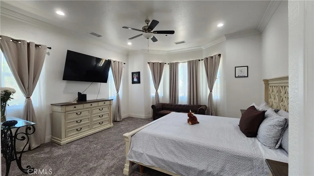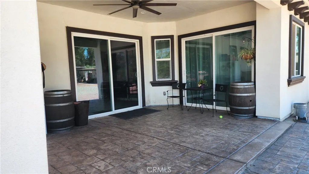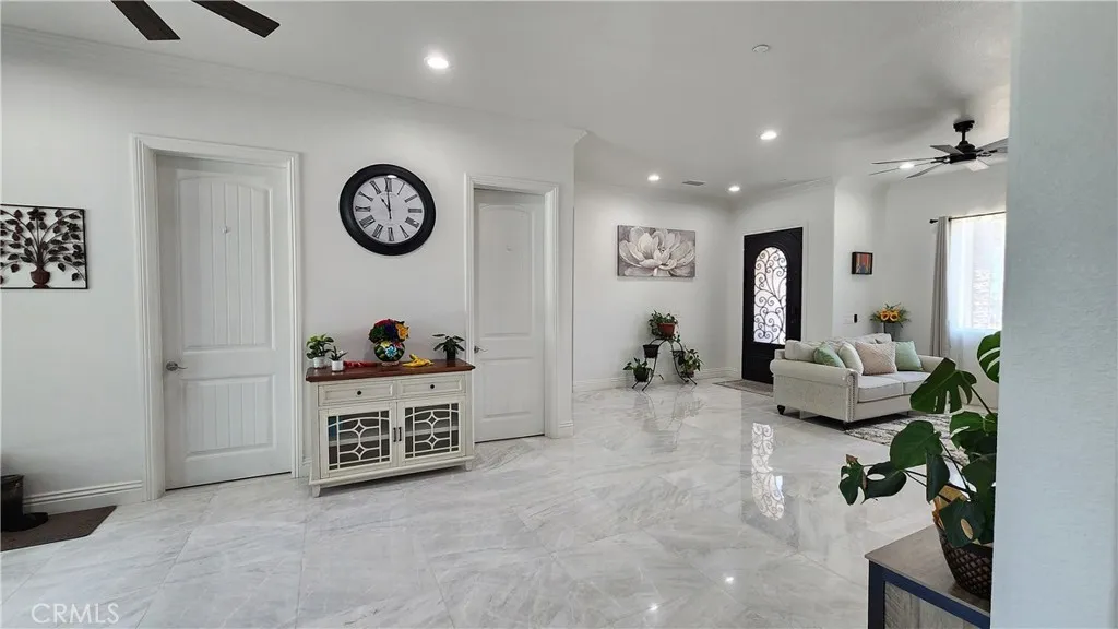 For Sale. This home is almost new, was built in 2022. Beautiful rural setting with almost 1.5 acres of usable land. This home features 5 spacious bedrooms and 3 Full Bathrooms. 10 foot ceilings throughout the home. Huge main suite with a private office, large walk in closet and very elegant bathroom with dual showers and custom tile work and glass enclosures. The kitchen has lots of storage, custom cabinets with wine bottles storage, a center island with quartz countertops, built in microwave, you will love it. Open concept. Large Living Room and Family Room as well. Dining area. Large Pantry. Custom front iron door. Marble tile floors throughout most of the home and carpet in the bedrooms. There are 2 AC Units, 2 Water Heater units and even PAID OFF SOLAR panels to save hundreds on your electric bill. Many mature trees and plants throughout the yard and citrus grove with mix of trees. Front iron fence with a custom gate and automatic opener. Storage shed with covered patio. The container and covered carport in the back yard is excluded but negotiable. Lots of room to build a second home or ADU. Room for, trucks, trailers, RV, Boat, horses……make it yours. Come and take a look and see you in escrow.