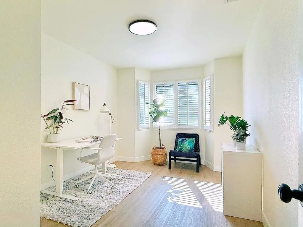 Gorgeous End unit with private entrance in the prestigious Miramar Terrace gated community! Fully remodeled in 2021, this bright and spacious home features an open living/dining area with high ceilings and tons of natural light, leading to a large private balcony. The remodeled kitchen boasts quartz countertops, beautiful backsplash, white shaker cabinets, and SS appliances. Bathrooms are upgraded with sleek fixtures, quartz counters, and designer tile. The Expansive master suite offers vaulted ceiling, dual closets, and dual-sink vanity. Second bedroom includes walk-in closet. Additional highlights include recessed lighting, plantation shutters, central A/C, in-unit laundry, and extra storage unit. Two parking spaces plus ample guest parking. HOA covers water, gated entry, security patrols, garbage, gas, and amenities including pool, spa, clubhouse, sauna, and gym. Ideally located in the heart of Santa Clara near Santana Row, Valley Fair, Nob Hill, Ponderosa/Eklund parks, restaurants, and major tech companies.