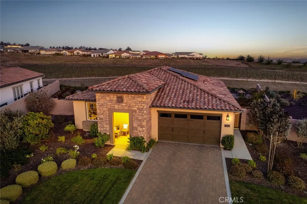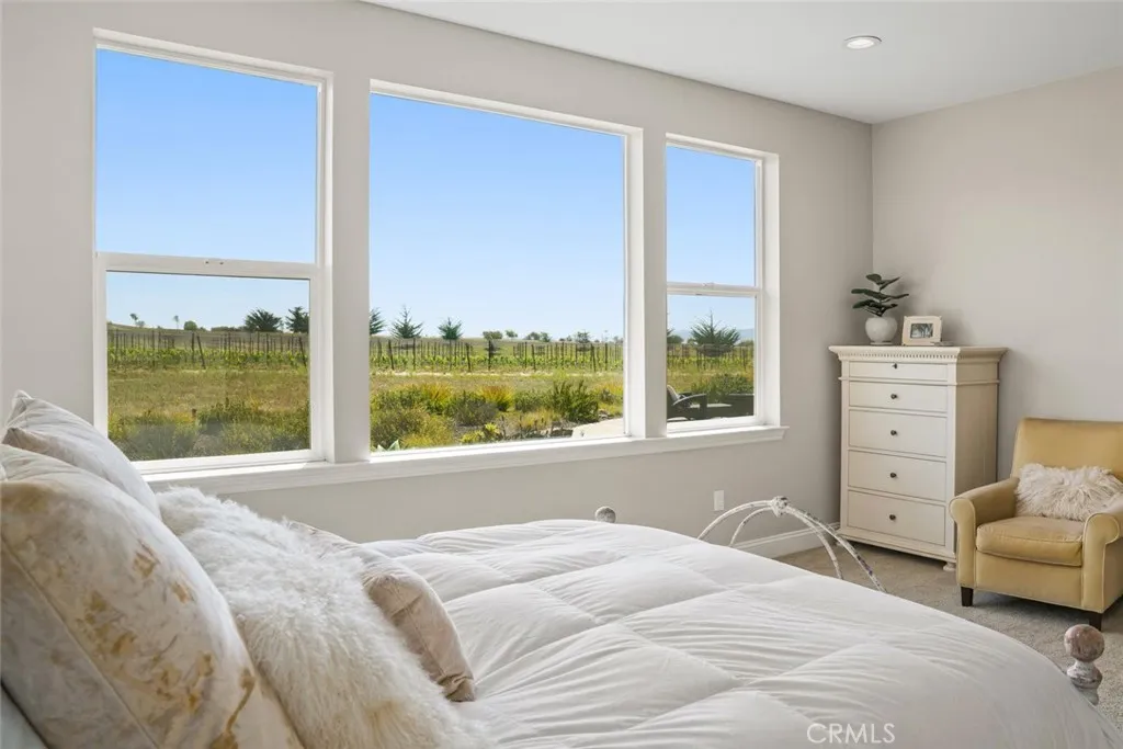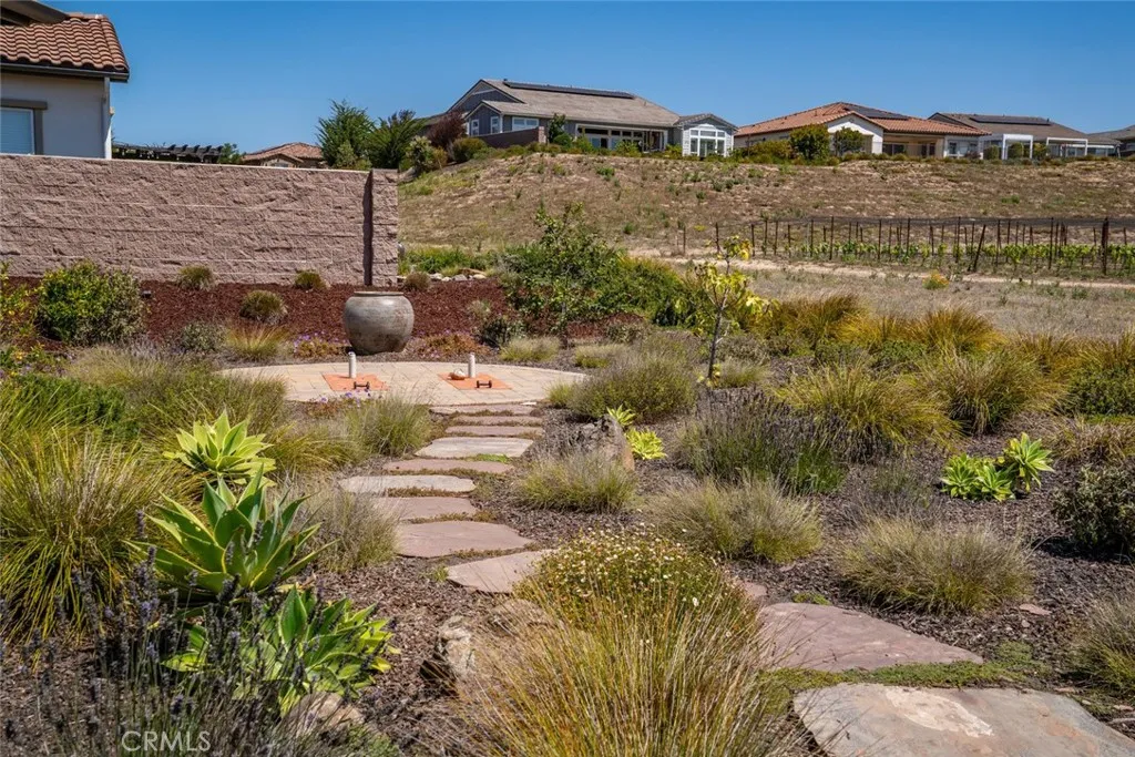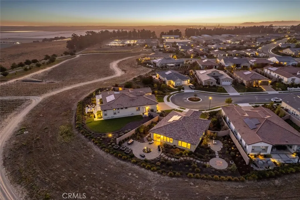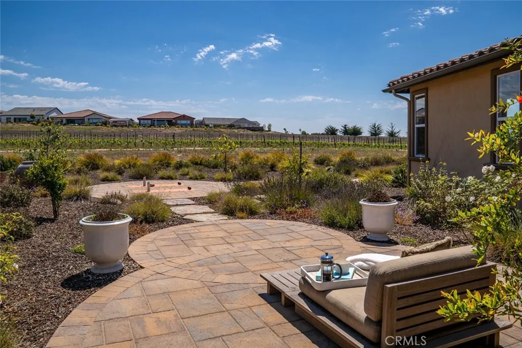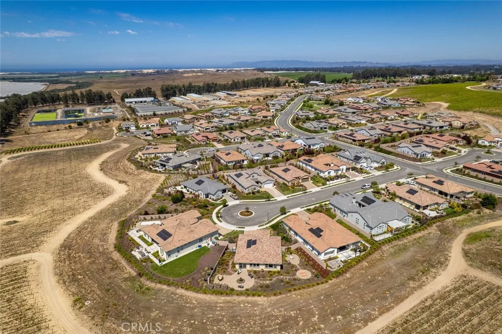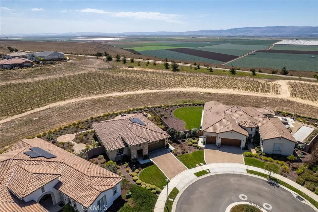 Step into unparalleled elegance with this single-level Solvang model, perched on a premium almost 11,000sf vineyard and mountain view lot in Trilogy at Monarch Dunes. Nestled at the end of a quiet cul-de-sac, this 2-bedroom plus office, 2-bathroom SOLAR and SMART home exudes the effortless sophistication of a model home, with tile floors, neutral palettes, & abundant natural light. The award-winning floor plan centers around a spacious great room with soaring ceilings, seamlessly connecting to a stunning kitchen featuring a custom waterfall-edge island, quartz countertops, top-tier GE Profile appliances, reverse osmosis system plumbed into fridge & spigot, five-burner gas stove, and stained maple soft-close cabinetry with pull-out drawers. A large pantry & oversized laundry room with desk and ample storage add both function and style. The primary suite is a serene retreat, offering breathtaking vineyard and mountain views, high ceilings, a spa-like bath with dual sinks, quartz countertops, walk-in shower with bench and decorative tile, & an expansive walk-in closet. The guest wing includes a corner bedroom with two large windows, a bath with soaking tub/shower combo, and an office , perfect for work, study or even a 3rd bedroom! Designed for modern living, this smart home features sophisticated automation: lighting with dimmers, thermostat, solar, water heater, appliances, remote entry, and voice activation via Alexa and Siri, along with Ring, MyQ, Rachio irrigation, internet booster for outdoor WIFI coverage, smart HQ, and programmable outdoor lighting/fountain. Step outside to your private resort: four distinct patios for alfresco dining, sun lounging, yoga, or morning reading, surrounded by lush, low-maintenance landscaping with beautiful fountain setting a peaceful tone with rose and veggie gardens, five fruit trees, and panoramic vineyard and mountain vistas. Stone accents, paver driveway, and southern exposure complete the idyllic setting. Live the Trilogy lifestyle with championship golf, fine dining, luxury spa, state-of-the-art fitness, and endless social opportunities. Relax in the expansive backyard and enjoy sweeping views of wildflower meadows and even NASA and SpaceX launches from Vandenberg. Golf course community with all the amenities right at your fingertips & just five miles from Oso Flaco Lake State Park dunes and beaches. Exceptional design, luxury, and technology converge to create a home that’s more than a residence—it’s a lifestyle.