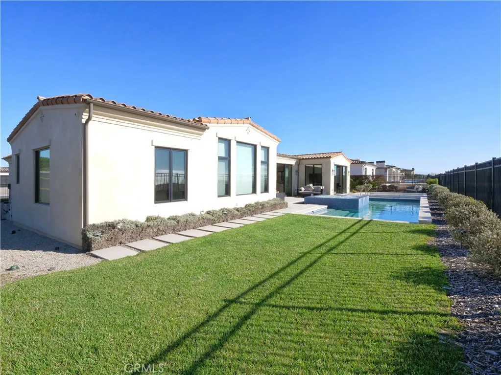 Completed in March 2021, this ONE-LEVEL Santa Barbara-inspired home offers stunning views of the ocean, coastline, and golf course. An immediate connection to the views and outdoors is felt as you enter this spacious, open-concept home through custom iron double doors, it is perfect for entertaining with a large group. The great room, kitchen, and family room flow seamlessly together, opening outdoors through custom paneled glass doors for unparalleled indoor-outdoor living. The backyard features a fantastic pool, an infinity spa, and a sunken fire-pit seating area. The great room showcases a modern linear fireplace with a custom surround. The master suite offers ocean views and directly accesses the spa, along with a large custom closet providing ample island storage. The bathroom includes a flush-entry shower, dual vanities, and a free-standing tub. Throughout the entire home, Weather Shield windows enhance comfort. All bedrooms feature custom cabinets and closets, along with a separate French door entry. This home features a thoughtfully designed floor plan built with quality and style. You will love the breathtaking sunset ocean views, the excellent climate in this section of the peninsula, top-rated schools, and the home’s high ceilings and open feel—all on one level. This is a forever home! Plus, it offers easy walking access to a network of ocean hiking trails in a great neighborhood with 24-hour security patrols. Too many features to list. Don’t miss this fantastic opportunity!