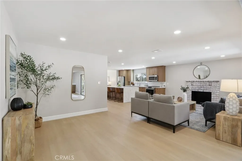 Welcome to this beautifully renovated Granada Hills gem situated on a spacious corner lot. This single-story home boasts a modern open-concept layout with brand-new interior and exterior paint, a new roof, and upgraded laminate flooring throughout. The stunning chef’s kitchen is the centerpiece of the home, featuring a 9-foot waterfall island with granite countertops, added cabinetry and pantry space, and sleek recessed lighting that flows seamlessly into the living and dining areas.