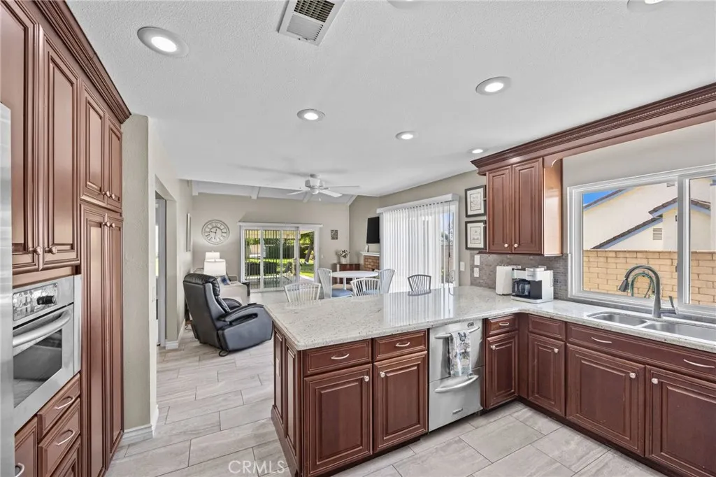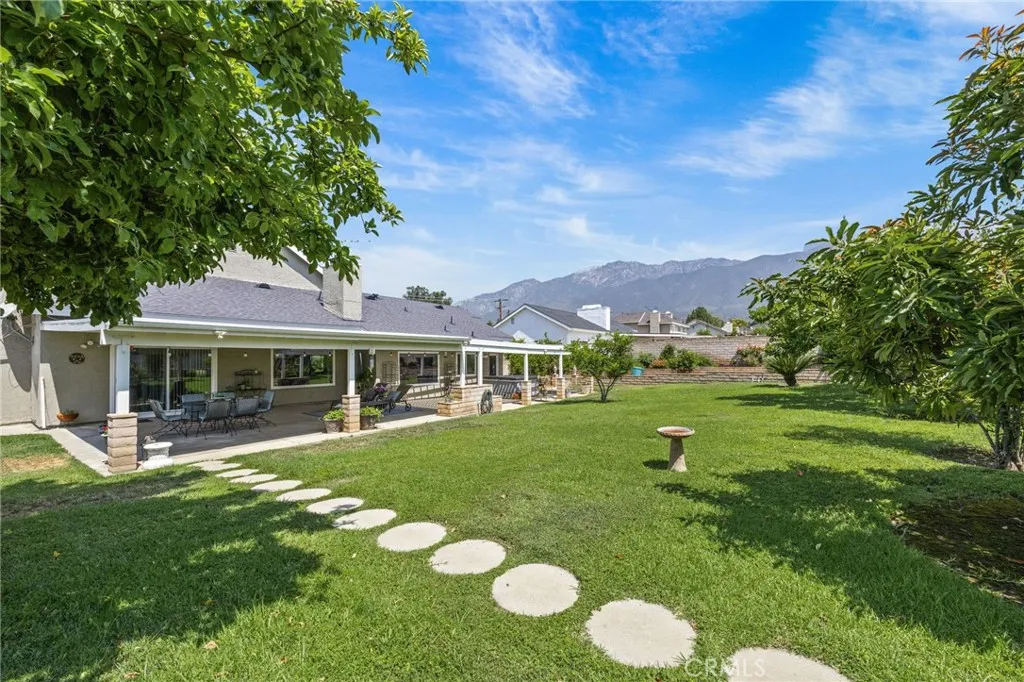 NEW ROOF AND LARGE AC!!! Beautiful home located in a gorgeous Alta Loma neighborhood. This immaculate home features 2,887 sq ft of living space on almost a half acre. There are 5 bedrooms and 3 bathrooms with 4 of the bedrooms conveniently located on the first floor. On the second floor there is a loft with one bedroom and bathroom; a perfect space when guests stay over! The primary bedroom features a vaulted ceiling, beautiful picture windows to view the mountains, a sitting area and ensuite bathroom. When you first walk in through the front door you’re greeted with a calm beach themed living room that has a vaulted ceiling and a big picture window viewing out to the lush backyard. The living room is separated from the formal dining room with a wet bar. The kitchen has granite countertops, dark wood cabinets, and six burner stove. The kitchen leads into the family room which has a vaulted ceiling making it feel bright and spacious. The sliding glass door in the family room leads out to the big backyard which is perfect for entertaining with the peaceful patio and landscaping. The backyard is lined with beautiful and mature fruit trees to enjoy throughout the year: apples, figs, avocados, oranges, apricots, grapefruits, plums, peaches, pomegranates, nectarines, limes and lemons! This is truly a serene garden. In the backyard you will find an above ground spa that has a great view of the mountains. There is a shed in the very back of the property that could be used as storage or even finished off as an office space. On the side of the home there is room for RV or Trailer parking. This home and the shed have new shingle roofs that were just done in June! There are newer windows all throughout the house that were done within the last 5 years. The cherry on top of all the good news about this home is that there is a new larger AC that was recently replaced. This home is TURN KEY and ready for its new family! Come see this stunning home today!