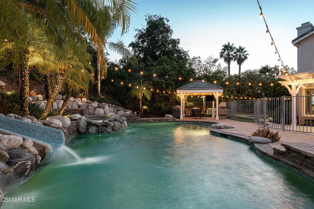 Price improvement and back on the market! A fantastic opportunity for new buyers after the first escrow fell through due to buyer nonperformance. Tucked away at the end of a serene cul-de-sac in Wood Ranch’s coveted Valley View Estates, welcome to 206 Shady Hills Court, a nearly 4,000 square foot residence that embodies both luxury and livability. Set on a flat ⅓-acre lot, this rare model property blends thoughtful design with resort style amenities, offering a true indoor outdoor lifestyle.Inside, the home features 5 spacious bedrooms and 4 bathrooms, with a layout designed for comfort and flexibility. The main floor includes a beautifully remodeled kitchen with modern finishes, a generous bedroom suite with an attached full bathroom, and a sprawling 800+ sq. ft. game/guest suite complete with its own kitchenette, full bath, steam shower, and private access to the backyard. Upstairs, the primary retreat and three additional bedrooms provide a perfect balance of space and privacy. A three zone HVAC system ensures climate control efficiency throughout the home, while the three car garage with two Tesla chargers adds practical convenience. The home is also equipped with solar system for both the home and the pool. The backyard features a resort style pool with slide and solar heating, a large BBQ area with a full size outdoor fire place, and a full size electric sauna. Active living comes alive with a private sport court, ideal for basketball or tennis, and the large grassy area framed by multiple mature fruit trees offers both shade and charm. The property is maintained with ease thanks to a Wi-Fi enabled smart sprinkler system, ensuring lush grounds year round.Beyond the home itself, Valley View Estates enriches the experience with access to a private lake that allows fishing, beautifully maintained greenbelts, and common areas. This prime Simi Valley location is also close to Wood Ranch Golf Club, award-winning schools, Rancho Madera Community Park, hiking trails, shopping, and dining.206 Shady Hills Court isn’t just a home – it’s a lifestyle and a place where every detail has been carefully crafted for comfort, connection, and endless enjoyment.https://www.206shadyhillscourt.com