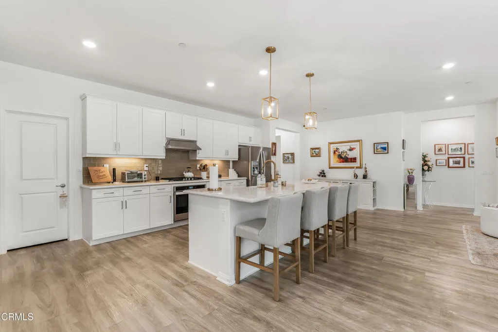 Welcome to this exquisite single-family residence, perfectly blending elegance, comfort, and modern functionality. With 3 spacious bedrooms, 2 luxurious bathrooms, and a versatile bonus room that can easily serve as a 4th bedroom, home office, or media room, this open-concept home is designed to impress.Step inside to find a thoughtfully curated interior featuring recessed lighting, neutral paint tones, and refined touches that elevate the home’s ambiance. Ideal for entertaining, the expansive living and dining areas flow seamlessly into the gourmet kitchen, where you’ll find a large island with a centered sink, modern backsplash, white cabinetry, ample counter space, and a walk-in pantry, all crafted to meet the needs of today’s lifestyle.The living room offers a warm and inviting atmosphere with built-in shelves and cabinetry framing a striking fireplace, while plantation shutters add elegance and privacy throughout. A large sliding glass door off the dining area opens to a spacious backyard, a true blank slate, ready for your dream outdoor retreat.The primary suite is a true sanctuary, featuring recessed lighting, shutters, and two generous walk-in closets. The spa-like en suite bath offers a dual vanity, tiled walk-in shower, and a soaking tub for the ultimate in relaxation.Two additional bedrooms are generously sized and share a stylish full bathroom. A dedicated laundry room, 2-car garage, and an extended driveway add to the home’s practicality and convenience.Located in a sought-after neighborhood, this beautifully appointed property offers luxury, flexibility, and space perfect for those seeking refined living with room to grow.