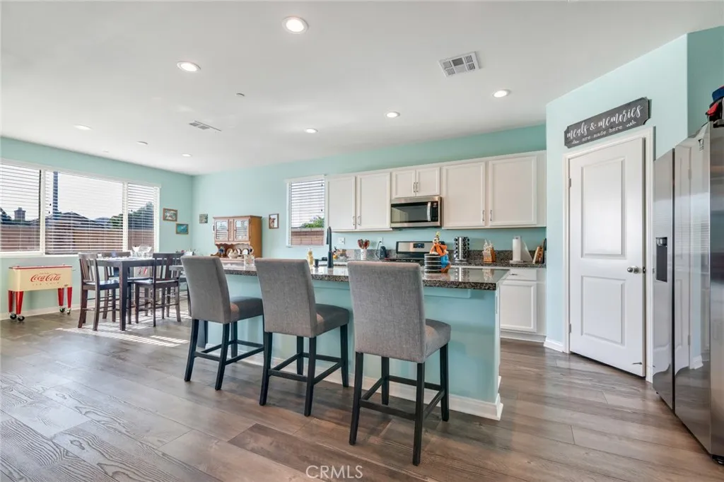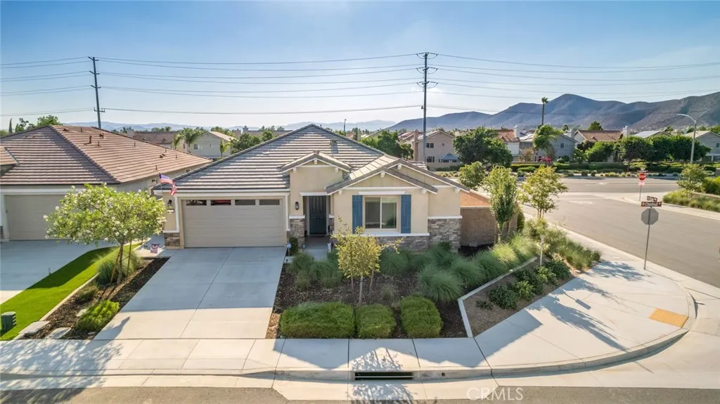 Welcome to Banner Park!! This well-maintained 3 bedroom 2 bathroom home has many upgrades and also has a flexi-room with double doors. The floor plan in an open concept and is designed for modern living. In the kitchen you will find granite counte tops, an island, and ugraded faucets. Throughout the home there is upgraded vinyl flooring with carpet in the bedrooms and flexi room. You will find recessed lighting throughout the home and the family room is wired for surround sound. The main bedroom has a walk-in shower, 2 single vanities and a walk-in closet. There is a separate laundry room with a washer hookup and gas dryer hookup. The 2 car attached garage features epoxy flooring. The front yard is landscaped with a sprinkler system and the backyard has a covered patio area and is ready for you to create your own space. The home also features solar panels and an area to install and EV charging station. Centrally located to the 215 Fwy, shopping centers, schools, and parks.
