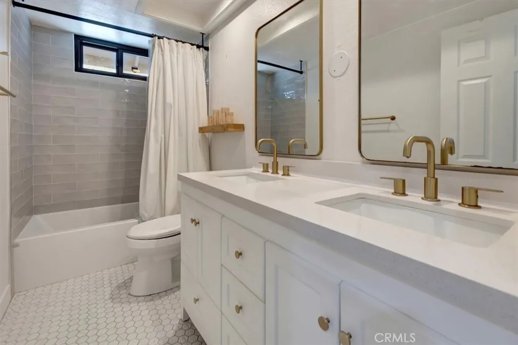 Located in the highly sought-out East Lake Village and situated on a large corner lot, an incredible opportunity awaits you! Step inside through the double-door entry and you’ll be greeted by an open-concept floor plan filled with an abundance of natural light, soothing tones, and soaring ceilings. New vinyl plank flooring, Milgard windows and plantation shutters set the stage for timeless style. The living room features a custom wood mantel fireplace and flows seamlessly into the formal dining room- ideal for entertaining and holiday gatherings. A remodeled kitchen has been thoughtfully redesigned with an expanded peninsula, quartz counter tops, white shaker cabinetry with self-closing drawers and modern pendant lighting. Off the kitchen, a spacious family room with fireplace (currently covered) and French doors opens to a backyard retreat. Continuing on the first level is a highly desired main-floor bedroom, a beautifully remodeled bathroom with custom shower tile, new fixtures, quartz-top vanity, tile flooring and dedicated laundry room. Upstairs features a large primary suite with mirror wardrobe doors, sitting alcove and ensuite bathroom (currently demoed and ready for your personal design vison). Also, upstairs are two additional bedrooms with walk-in closets, a remodeled full bath with dual sinks, stone top vanity and custom tile work, plus built-in hallway storage. Ready to enjoy a dip in the refreshing saltwater pool or unwind in your own relaxing spa… Well, this is the place! With expanded retaining walls, newly installed artificial turf and added cement side yards, you’ll have plenty of space for BBQs, outdoor dining and lots of fun! The 3-car garage with epoxy flooring adds the finishing touch to this home. Eastlake Village is centrally located in Yorba Linda with easy access to dining, shopping and award-winning schools. As a resident of East Lake Village, you’ll enjoy exclusive access to multiple pools, gym, sand volleyball, tennis, pickleball, clubhouse activities, year-round events, lake fishing and boat rentals and so much more! Additional upgrades include: New roof, new Milgard black framed windows, new electrical panel, new AC & furnace, recessed lighting with dimmers, water softener, new pool pump and filter. See amenities list for home highlights and upgrades. MAKE THIS A MUST SEE!!