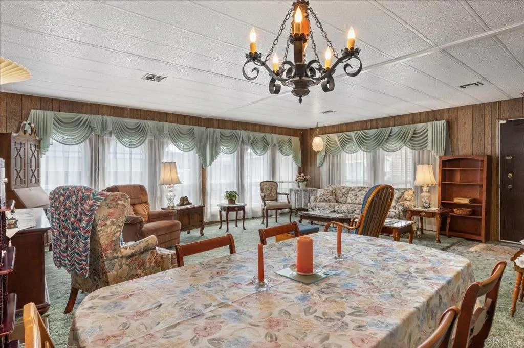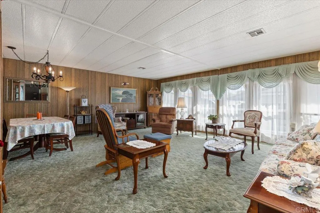 Spacious 2 bedroom / 2 bathroom home with newer roof located in a 55+ rent controlled park. No Property taxes (this home is still registered with HCD). Home has a wheelchair ramp for easier access. Windows have been upgraded with dual paned to improve insulation. This home boasts a HUGE formal Living room in addition to a more cozy Family room that is open to a nice Kitchen w/ a built in island/dining bar. The Primary Suite features two closets and double sinks in the ensuite Bathroom! The Guest Bedroom also has it’s own ensuite Bathroom. The exterior has a raised covered porch as well as a private covered patio, two storage sheds, and a fenced yard with an orange tree. This level park is great for walking and offers an enclosed dog park. One small pet < 25 lbs is welcome with prior park management approval. One primary occupant must be over 55, the 2nd occupant can be 35+. Monthly space rent is $644.01.