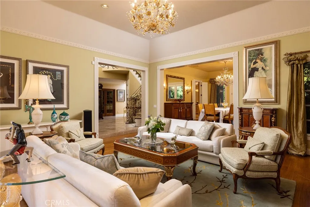 Set on a highly-desirable, cul-de-sac street in Nellie Gail Ranch, this custom-built, fully gated estate achieves a rare blend of elegant grandeur and relaxed California living. Framed by lush landscaping, the half-acre grounds create a private backdrop for hosting and relaxed daily living. Cook at the outdoor kitchen, linger by the saltwater pool or spa, then wind down on the patio or private deck as the day cools. Inside, an ideal floor plan combines dramatic scale with thoughtfully arranged spaces. A soaring two-story family room with wet bar flows out onto the exterior, while the executive library finished in custom oak woodwork lends warmth and sophistication. The chef’s kitchen features a large center island, ample storage, and direct connection to formal dining and outdoor entertaining areas, making it a natural hub for gatherings. Five bedrooms include a main-level suite, a versatile upstairs office/bedroom with Jack-and-Jill bath to an adjoining bedroom, another ensuite with Toto washlet and generous primary suite. The primary bedroom is a private retreat with a spacious walk-in closet, custom window coverings, large walk-in closet and a marble-finished luxe bath. Artisan details are found throughout, including crown molding, custom cabinetry, and finely-styled spaces such as the powder bath and laundry room, each with onyx countertops and thoughtful finishes. Upgrades ensure your peace of mind, including Pella windows, newer HVAC systems, a full-house PEX repipe, water conditioning system, and hardwired security. Outdoor living is highlighted by a saltwater pool and spa, expansive sundeck, Fire Magic BBQ with quartzite bar, multiple patios with heaters and fans for year-round enjoyment and direct access to the horse trails. The grounds even include a gated dog run for pets and an herb garden for your green thumb. Life in Nellie Gail Ranch offers a unique blend of privacy and exceptional community amenities including expansive trails, swim, tennis, and pickleball access, along with neighborhood events and security, all with low quarterly dues. Enjoy convenient access to freeways, top-rated schools, shopping and dining, and world-class beaches. This is California living at its finest, with room to gather and room to unwind.