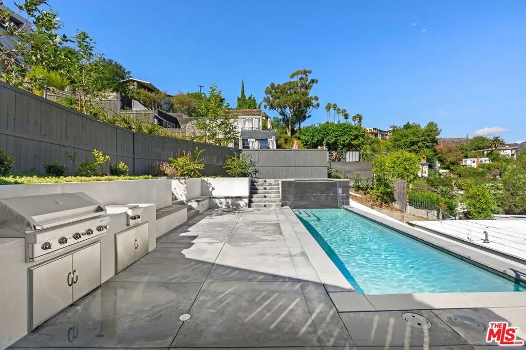 2311 Vasanta is an iconic Beachwood Canyon property offering an exquisite Hollywood Hills experience from the moment you step inside. This architectural gem greets you with a modern staircase inviting you to step into the great room and enjoy the stunning views of the Hollywood Hills while being nestled in the quiet coveted neighborhood of Beachwood Canyon. The main house offers an open floor plan, beginning with a library area which melts into a great room featuring dining area, modern kitchen, marble island, bar, fireplace, wine storage and a large entertaining space wrapped in a magnificent balcony with outdoor entertaining areas and magical views. Ascend the open staircase to the second level and you will find three bedrooms, a second outdoor entertaining terrace and an open den area featuring built in desks. When you open the door to the master bedroom you will be stunned by a space that looks and feels like a 5 star hotel complete with balcony, two master closets a free floating bath tub and a gorgeous walk in rain shower, bordered by exquisite tile and views of the Hollywood sign and Beachwood Canyon. Allow yourself to walk through the den and discover the two guest suites, each offering their own en suite bathrooms and wonderful views. Return to the den and slide open the floor to ceiling windows where there is natural room to perform as host, or escape to your own sanctuary. Elevate on the last flight of stairs where 2311 Vasanta offers you one more surprise, a swimming pool and hot tub, situated atop the property where you can experience Hollywood’s “Magic Hour” while soaking in the views of one of California’s most iconic canyons. The stunning house offers an additional guest studio that is attached to the main house, with a separate address. This studio has its own private entry and includes a kitchen area and private bathroom.The residence also offers a driveway that fits three cars and a garage for two vehicles.