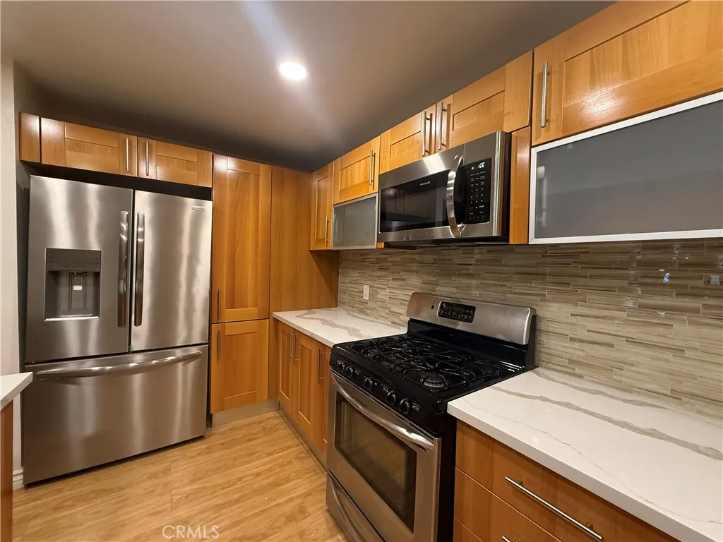 PRICE IMPROVED! FURNISHED FIRST-LEVEL LUXURY 2+2 CONDO IN TARZANA – WELCOME TO THIS BEAUTIFULLY FURNISHED FIRST LEVEL 2-BEDROOM, 2-BATH CONDO LOCATED IN A GATED COMMUNITY IN THE HEART OF TARZANA. THE PROPERTY IS IDEALLY SITUATED WITHIN WALKING DISTANCE TO SHOPPING, DINING AND PROVIDENCE CEDARS-SINAI TARZANA MEDICAL CENTER. UNIT #120, IN BUCKINGHAM BUILDING C, SITS CONVENIENTLY NEAR THE ENTRY GATE AND COMMUNITY POOL. THE ELEGANT STAINED-GLASS DOUBLE DOORS OPEN TO A STYLISH LOBBY, SETTING THE TONE FOR THIS MOVE-IN READY HOME. OFFERING 1495 SQ FT OF LIVING SPACE, THE CONDO FEATURES A SPACIOUS LIVING ROOM, DINING AREA, WET BAR AND AN OPEN-CONCEPT KITCHEN. RECESSED LIGHTING AND LAMINATED FLOORING FLOW THROUGHOUT. FIREPLACES IN BOTH LIVING ROOM AND PRIMARY SUITE ADD WARMTH AND CHARM. THE KITCHEN BOASTS A CENTRAL ISLAND, STAINLESS STEEL APPLIANCES, WOOD-GRAIN CABINETRY WITH SELF-CLOSING DRAWERS AND QUARTZ COUNTER TOPS. THE PRIMARY SUITE IS ENHANCED BY BAY WINDOWS, A LARGE WALK-IN CLOSET, DOUBLE-SINK VANITY AND JETTED TUB/SHOWER. THE SECONDARY SUITE OFFERS ITS OWN WALK-IN CLOSET, DOUBLE-SINK VANITY AND SHOWER. ADDITIONAL HIGHLIGHTS INCLUDES AN IN-UNIT LAUNDRY AREA WITH WASHER AND DRYER AND A GATED TWO-CAR TANDEM COMMUNITY GARAGE.