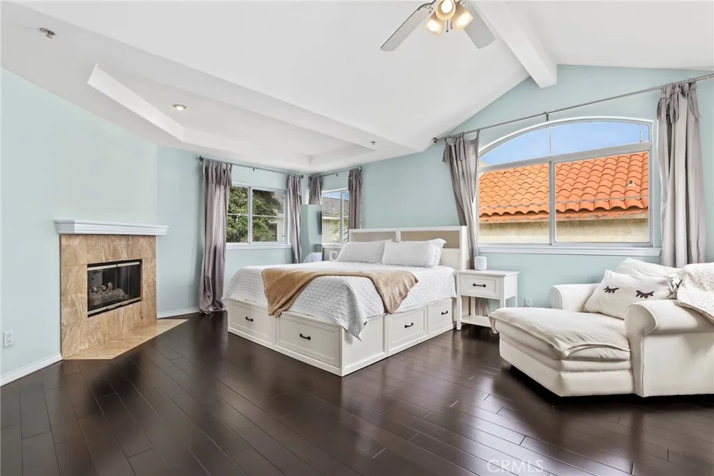 Discover a rare opportunity to own a detached, rear-unit townhome that lives like a single-family home. Nestled on a quiet street, this property offers the perfect blend of comfort, privacy, and charm, all just minutes from the beach. A Home Designed for Modern Living – Enter inside to an open-concept living area, where elegant archways, gorgeous wood floors, and a stacked-stone fireplace create a warm, inviting atmosphere. The renovated kitchen is a true highlight, featuring quartz countertops, a beach-inspired backsplash, and stainless-steel appliances—perfect for both everyday meals and entertaining. A convenient breakfast bar and an intimate dining area provide plenty of space for dining. The main level also includes a laundry room, a powder room with extra storage under the stairs, and direct access to the garage. Unwind and Entertain – Open the doors to the sunny backyard, where you can relax on lazy afternoons or host evening gatherings under the stars, where the private outdoor space is an ideal extension of the home’s living area. Your Luxurious Retreat Awaits – Upstairs, you’ll find four generously sized bedrooms, all featuring dark wood floors, high ceilings, and ceiling fans. The expansive primary suite is a luxurious retreat, complete with its own fireplace and a large walk-in closet. The spa-like primary bathroom is designed for daily pampering, with a pebbled-floor and a separate bath and shower. Prime Location and Lasting Value – Located within one of the South Bay’s top-rated school districts, this home is an ideal choice for families. With no shared walls, a functional layout, and high-quality upgrades throughout, this is a desirable property that won’t be on the market for long.