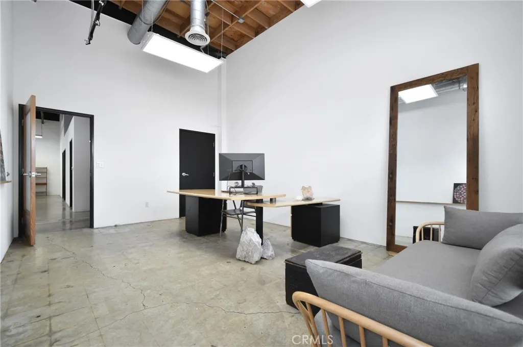 This handsome property is centrally located just west of the downtown area with immediate access to the 10 and 110 frwy. This space offers three private offices, 2 offices with attached private bathrooms,3 cubby offices in an open studio floor plan with additional area for workstations or office equipment, large storage closet, three bathrooms and full kitchen with filtered water. Polished concrete flooring in the main flex space area that has been freshly painted. The warehouse has a convenient roll-up door for deliveries with 15 ft ceilings with ample storage an additional loft space. A/C throughout the building. Building is hard wired for workstations throughout the creative space. Gated of street parking. This is a triple net lease.