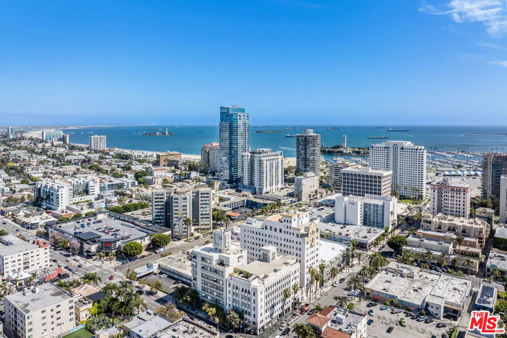 Nestled in the renowned Lafayette Condominium and located in the heart of downtown Long Beach, this exquisitely renovated studio offers an exceptional floor plan with only one shared wall. As an end unit, it’s bathed in natural light streaming in through oversized windows at both corners. Inside, you’ll find a custom kitchen with built-in cabinetry, quartz countertops, stainless steel appliances, and a built-in microwave. The flooring has been recently upgraded to water-resistant wood-laminate, and the ceiling has been refinished with recessed (canned) dimmable lighting for both ambiance and function. The bathroom has been fully remodeled with clean, tasteful finishes. Convenience is top-notch: quick access to the elevator and stairs. Common amenities are plentiful, including a comprehensive fitness center, a grand Art Deco lobby with a relaxing library and lounge, and an ornate copper elevator adding historic charm. On the rooftop: enjoy sweeping views of the city and ocean from a handsome deck and solarium. There’s also a spacious billiards room (pool table, shuffleboard, etc.), an outdoor patio with BBQ areas, and for pet lovers, a dog washing station. Laundry facilities are tech-savvy and situated onsite. The Lafayette complex is in the East Village Arts District / Downtown Long Beach, which gives it high walkability and access to many urban conveniences.