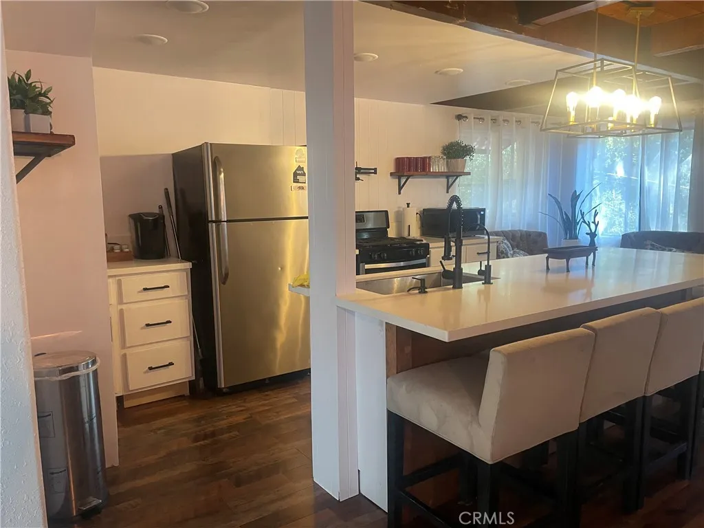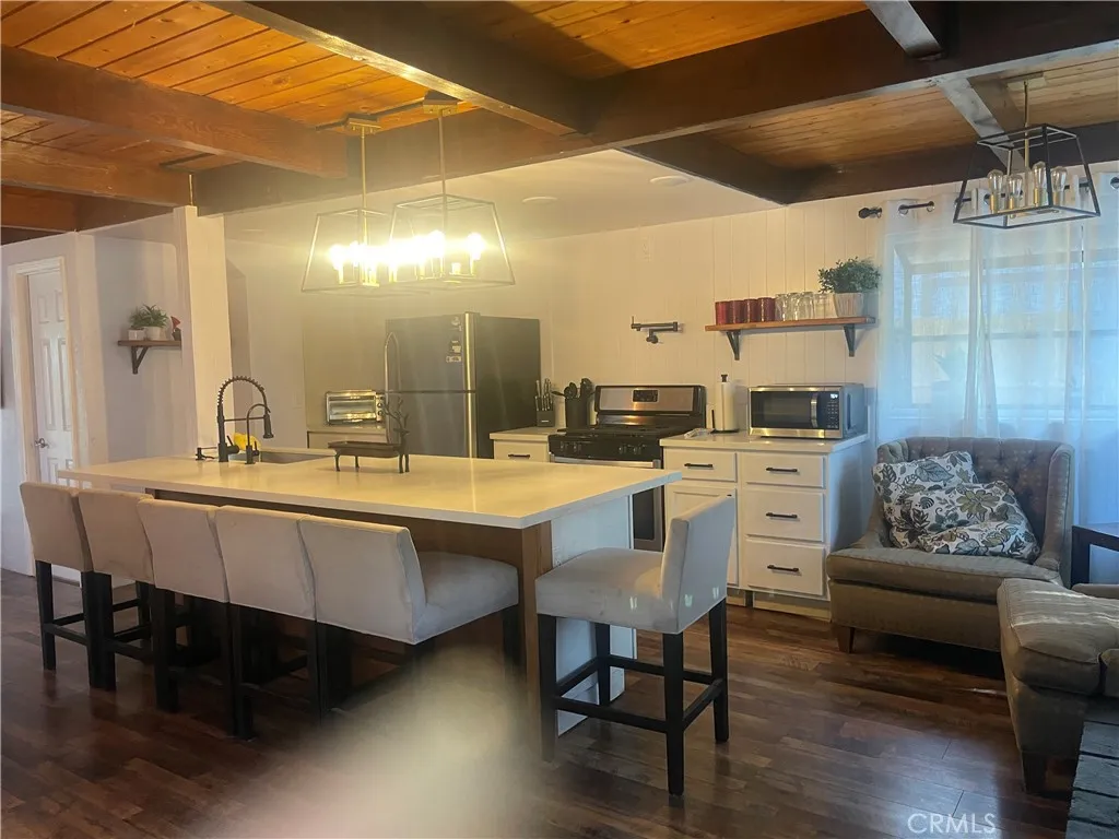 Fabulous furnished home in the woods with tons of upgrades, a huge fenced yard and plenty of parking not far from lake Gregory or the 210 freeway. Tons of usable outdoor space, skylights in bedrooms, wood beamed ceilings, recessed lighting, huge island kitchen with a farmhouse sink, stainless appliances and a wood burning stove for cozy winter days!