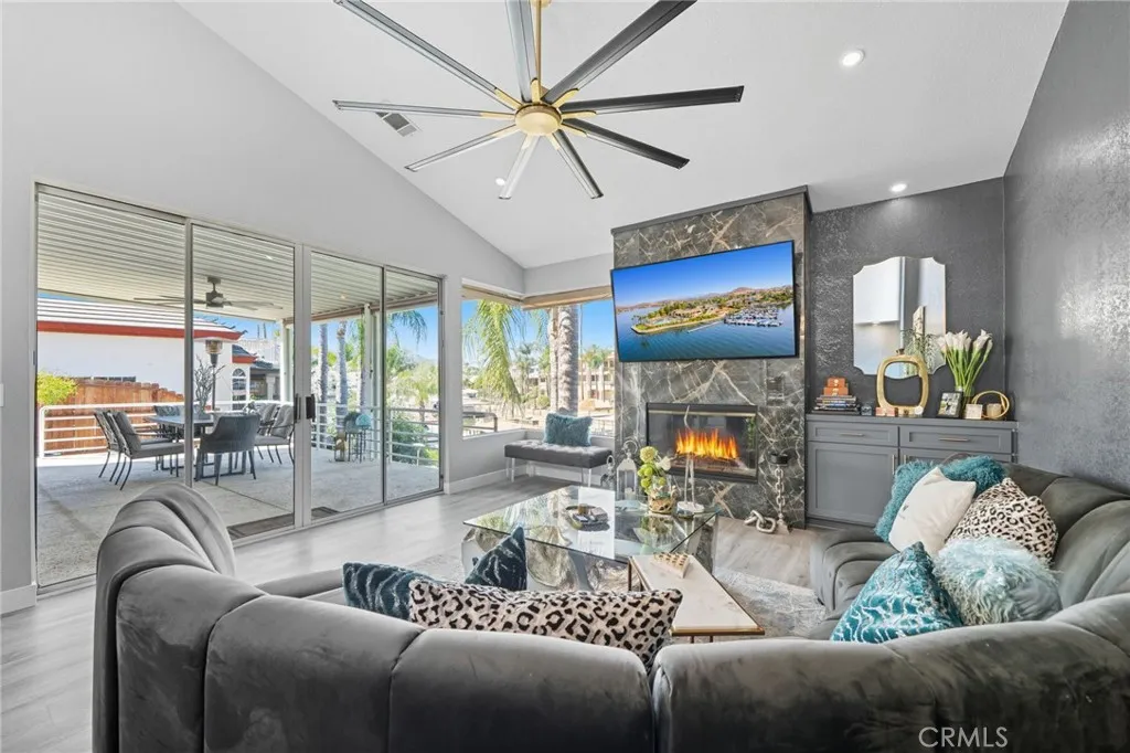 Price to move!!!!Remodeled by one of Newport’s award winning, “builder of the year” recipients! This home is a beautiful love story–a truly exceptional lake front and cul-de-sac home that boasts impressive and thoughtful craftmanship. Fully remodeled by a skilled general contractor for and with his wife, a celebrated designer. Together their vision blends timeless style, thoughtful, modern luxury and functionality. The gourmet kitchen is a chef’s dream, featuring dreamy Z-line appliances, quartzite counters, custom cabinetry with pull-outs and soft close features, smart storage solutions, specialized racks for corner access, and dedicated compartments for everyday necessities like trash bags that are stored over the trash can. Enjoy the views but do not miss the custom wine storage tucked under the stairs or the 3rd car tandem garage that was converted to a home gym. Upstairs find two bedrooms plus the primary bedroom, each with cathedral ceilings. The upstairs bathroom is worthy of any five star hotel or spa and is only rivaled by the primary suite (oh that closet!!!!) that looks like it is out of Architectural Digest! Solid surface flooring throughout the entire house! Gather with friends and family in multiple entertaining areas, or dine al fresco under the covered patio as the sun sets over the lake and surrounding mountains. Outside, enjoy low maintenance artificial turf, water views, lakeside lounging, direct boat access and more. Such a love story has to include morning coffee while feeding your new duck friends as they stroll by your waterfront seating area… Did we mention solar and new roof? This home includes a 13.54KwH peak capacity solar system (owned, not leased) and a new concrete tile roof. This home is designed for vacation and everyday living. New to Canyon Lake? This community offers an 18 hole golf course, 400 acre private lake, campground facilities, multiple restaurants (Sunset Lounge, Lighthouse Restaurant & Country Club Bar & Grill), a Jr Olympic sized pool + kid’s pool, equestrian facilities, over 15 parks and beaches, six pickleball courts, tennis courts & clinics, multiple baseball fields, a senior center and a community garden! Offers may include an option for furnishings, the new boat and the six-seater Onward golf cart. It is your turn to fall in love.