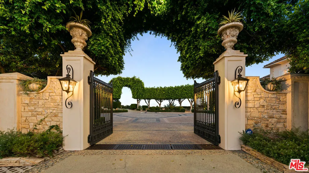 The Antelo View Estate stands as one of Los Angeles’ most distinguished and irreplaceable residences, tucked away at the end of a secluded private road in Bel-Air. With nearly unmatched scale, privacy, and design pedigree, this exceptional compound encompasses two APNs and is secured behind double gates, unveiling a world entirely its own. A sweeping motor court welcomes guests with commanding views stretching from the glittering city skyline to the serene mountains and the Pacific Ocean beyond. Graceful fountains accent the arrival, their gentle flow enhancing the sense of tranquility and grandeur that defines the estate. Completely reimagined through an extensive, design-driven remodel, the estate masterfully fuses timeless sophistication with modern innovation. The 6-bedroom, 9-bath main residence is defined by grand-scale interiors, filled with abundant natural light and breathtaking views from nearly every room. Stately fireplaces throughout the home offer warmth, dramatic presence, and intimate gathering spaces, anchoring living areas with a sense of refined elegance. The lower level is a retreat for both leisure and entertainment, featuring a state-of-the-art theater with bar, a private gym with steam shower, wine storage, and flexible staff or wellness quarters. At the heart of the home lies a spectacular new chef’s kitchen, curated with bespoke white oak cabinetry, hand-selected marble countertops, dual oversized sinks, and an array of Miele and Gaggenau appliances. An exquisite brass wine display, inviting fireplace, walk-in pantry, and breakfast nook with unobstructed views further elevate the space, transforming everyday living into an art form. The second floor reveals four gracious bedrooms, crowned by a primary suite of rare distinction. The suite features dual spa-inspired baths, expansive walk-in dressing rooms, a fireplace for quiet evenings, a private office, and a vast terrace that embraces the horizon. Beyond the main residence, two guest homes extend the estate’s legacy of luxury. The upper two-story guest house presents nearly 3,000 square feet, complete with two bedrooms, three baths, a full kitchen, and a great room anchored by a dramatic fireplace. French doors open to garden terraces accompanied by gentle fountains and rolling lawns, crafting an atmosphere of serenity. The lower guest home, nestled under the tennis court, offers two bedrooms, two baths, a full kitchen, laundry, and wrap-around terraces immersed in tranquil treetop views perfect for long-stay guests or staff. Outdoors, the grounds unfold in true resort style: a dramatic swimming pool with cabana, a tennis court with viewing pavilions, manicured gardens, and a romantic loggia designed for alfresco dining or intimate wine tastings. Fountain features dot the landscape, blending the soothing sound of flowing water with the natural beauty of the gardens. Interwoven pathways and a private golf cart circuit encircle the entire estate, underscoring its rare sense of scale and seclusion. The Antelo View Estate is more than a home it is a private sanctuary of architectural beauty and natural majesty. With its many fireplaces, enchanting fountains, unrivaled vistas, world-class amenities, and a level of craftsmanship seldom seen, this legacy compound represents one of the most important and prestigious offerings to ever arrive on the market in Bel-Air.
