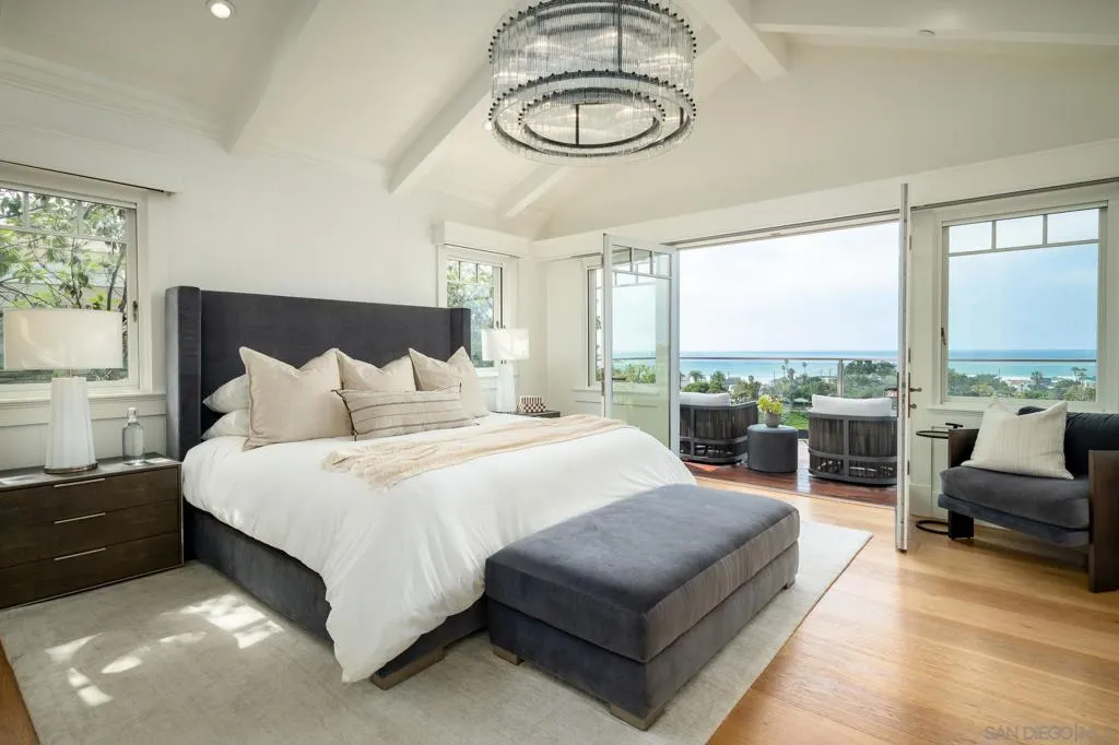 Elegantly crafted. Dramatic 180° panoramic ocean views. No other architect captures the essence of Del Mar quite like Bokal & Sneed. This 4+BR,5.5BA coastal craftsman unpretentiously refines the art of seaside living. Inviting. Timeless. There’s poetry in how the house is anchored so discreetly into the hillside, concealing the infinity-edge pool. Superior craftsmanship: custom built-ins, wide-plank white oak floors, expansive media room & gym. Walk everywhere! The Village of Del Mar and beaches are a quick jaunt. This house is all about The Reveal. Driving through the winding roads of Olde Del Mar, you could easily breeze past 2026 Seaview Avenue. And that’s the point. Once inside this secluded family retreat, the whitewater views are absolutely unmissable. We’re talking vistas from La Jolla stretching toward Del Mar Rivermouth, where bluffs majestically shift colors with the sun. Enviably immersed within the landscape, this house personifies the beach town’s trademark low-key luxury. That’s because Del Mar-based architects Bokal & Sneed wrote the script. The indoor-outdoor blueprint leverages views while creating intimate perches to savor nature. With a Dutch door, wood shingles, wainscoting and vaulted ceilings, expect tradition and craftsmanship. Meanwhile, a luxurious portfolio of high-quality finishes is also timeless: wide-plank white oak floors, Calcutta marble, Idaho Quartzite floors, Ipe deck, marine-grade stainless rails. And custom-built everything. The sumptuous primary bedroom features a walk-in closet and spa bathroom. Better still? Lay-down ocean views and a private balcony for morning coffee and meditation. On the second level, there’s a quartz bar flanked by lounge seating and a glamorous glass-encased wine display. Kick back at cocktail hour for ocean views stretching beyond the saltwater infinity-edge pool and spa. Also on the second floor: two en-suite bedrooms with access to the outdoors; a large laundry room; and a 2-Car finished garage. Plus: A terraced garden scented with herbs and citrus trees. Don’t miss: The expansive media room, and airy vaulted gym with a mounted Elkay water system. Also on this level: the fourth en-suite bedroom with ocean-views and an office. Leave the car at home. You are a 10+ minute walk to beaches, coffee shops, restaurants, a new gourmet market, the library, post office and more. Learn to navigate Del Mar’s neighborhood trails, presenting pretty little shortcuts to your favorite café and surf checks.