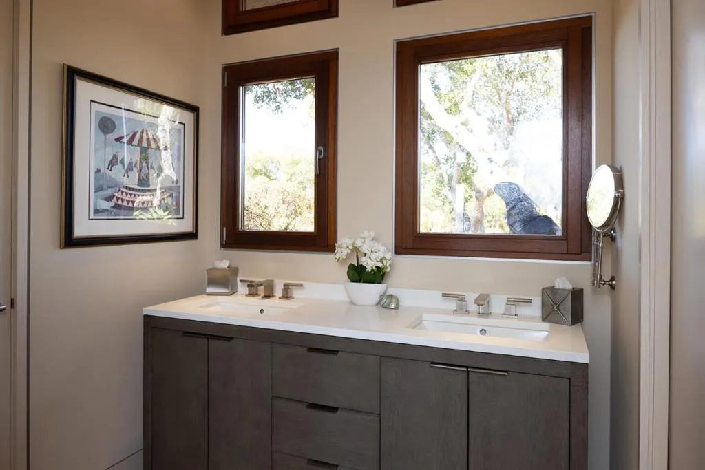 Set amongst the rolling hillsides of Clint Eastwood’s world-renowned Tehama Golf Club, this exceptional 6,949 SqFt estate offers 5 bedrooms, 5.5 baths and premium craftsmanship throughout. Built in 2007, the home features San Ardo stone exterior, Jerusalem limestone floors, and rich wood accents. The chef’s kitchen boasts custom Eggersmann cabinetry from Germany, while Italian Rimadesio closets and Konnen GlasHaus windows highlight bespoke design. Expansive living areas include 4 interior fireplaces, a media room with 4K projection, and seamless indoor and outdoor flow to terraces, fire pits, and 2 pools – a lap pool and cold plunge, plus a spa. Modern living includes enterprise-grade 1 gigabit internet and internet-enabled whole-house automation, including a Lutron lighting system, Yamaha MusicCast audio, and Honeywell security with Nest cameras. Energy efficiency shines with a full solar array, 3 Tesla Powerwalls, and advanced water systems. With a detached 3-car garage, radiant heating, guest house renovations, outdoor entertaining spaces, and a plumbed Ooni pizza oven, this property blends elegance, technology, and comfort in one extraordinary residence. Just minutes to world-class beaches, shopping, and restaurants, this is an incredible opportunity for Carmel luxury living.