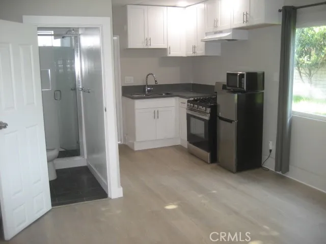 STUDIO APARTMENT IN A TRIPLEX. ALL UTILITIES INCLUDED. TWO CAR ATTACHED GARAGE INCLUDED WITH REMOTE CONTROLS. WASHER & DRYER AND GARDENER INCLUDED. NEW APPLIANCES: FRIG, MICROWAVE, OVEN, STOVE. LARGE PICTURE WINDOW TO BEAUTIFUL YARD AND TREES. THREE BLOCKS FROM 110 FWAY AND SHOPPING. NICE NEIGHBORHOOD. PRIVATE LOCATION WITH SECURITY LIGHTING. VERY NICE NEIGHBORS.