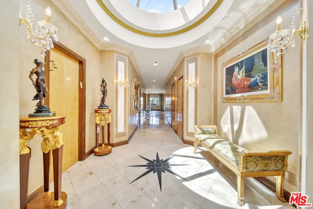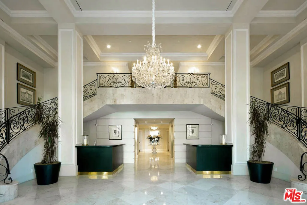 This regal penthouse in the iconic Le Faubourg building, which has been home to celebrities, offers over 5,300 sq ft of impressive unobstructed panoramic views from Beverly Hills to Downtown LA. This penthouse offers privacy and high security. 6 bedrooms, 7.5 baths, 4 fireplaces, a large chef’s kitchen, formal living room with wet bar, formal dining room, library, separate service entrance and 3 dramatic pyramid skylights, flood the penthouse with natural light. The oversized primary suite includes two fireplaces, a sitting area, large walk in cedar closets and an opulent marble bath. French doors lead to multiple balconies, while a spiral staircase leads to the private rooftop, spanning over 700 sq ft, overlooking Beverly Hills and beyond. Full-service luxury begins when you pull into the driveway and are greeted by an onsite valet. Additional amenities include a large private storage room, 24-hour doormen, concierge, security, pool/spa and gym. Moments from Rodeo Drive, Sunset Blvd, and everything Beverly Hills has to offer. A rare opportunity to own this landmark Beverly Hills Penthouse in the world- famous 90210.