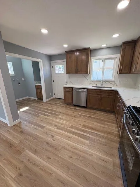 Welcome to this charming 3-bedroom, 1-bathroom home located in an established quiet tree lined neighborhood. This residence offers a comfortable 1,044 square feet of living space, perfect for those seeking a cozy yet functional layout that flows from living to dining to kitchen with ease. The kitchen is a standout feature, equipped with quartz countertops, a dishwasher, garbage disposal, microwave, and a gas oven range, complemented by a convenient pantry for additional storage needs. The interior boasts laminate flooring throughout, providing a sleek and easy-to-maintain surface. Practical amenities include an inside laundry area complete with a washer and dryer, central AC, detached garage, large yard round out this cozy and functional cottage Central Santa Clara location between Nvidia and Santa Clara University and easy access to Freeways