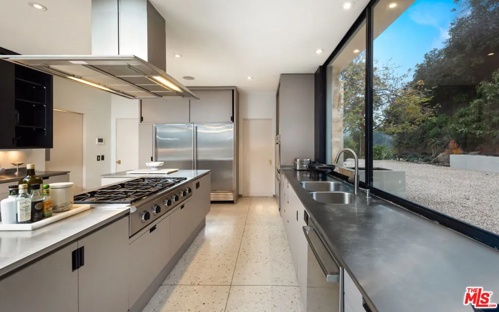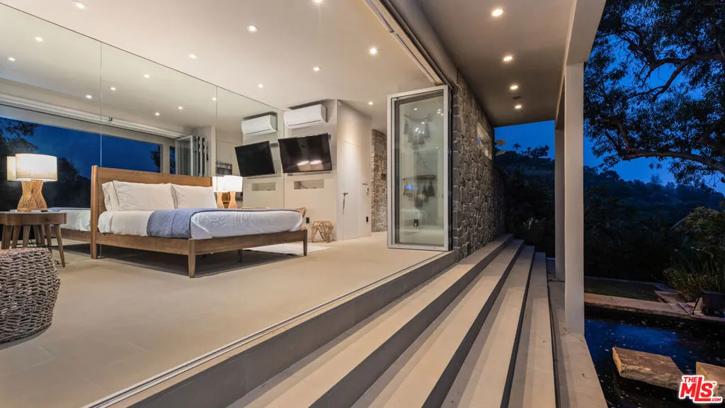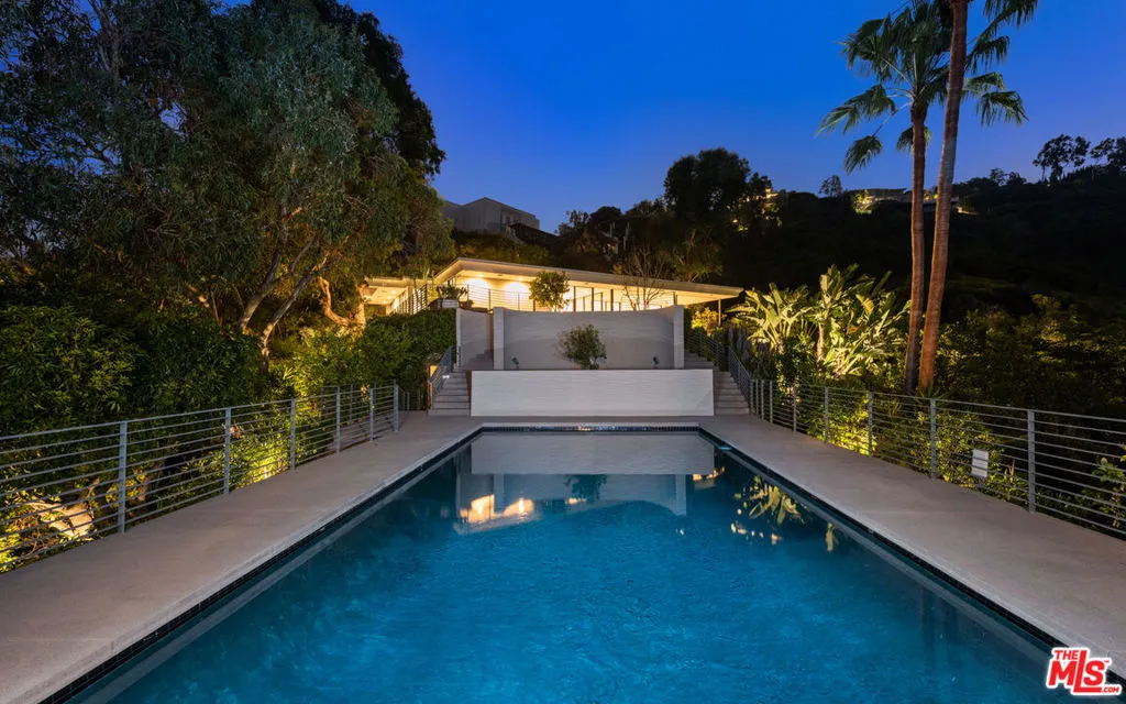 Available fully furnished and turnkey for short, midterm, or long term lease! Rustic and urbane, old-world and high tech, where rural estate meets downtown elegance in this once in a lifetime sensory immersion experience. Escape from ordinary down the a private driveway to the gravel motor court, earthy stone fascia, and arboreally adorned grand entrance to the exquisite execution of this contemporary hillside estate. Natural light will greet you in virtually every corner of the dramatically-styled indoor-outdoor open plan living spaces with floor to ceiling glass walls that reveal resort-style landscaping and marvelous canyon views. You will cherish every moment in the spacious living room with its uplifting fireplace, family room, dining room, gourmet kitchen with professional appliances, custom cabinetry and breakfast, and covered patio. Indulge your inner sun-worshiper on the rear lawn and wood deck or beside the shimmering pool in the viewing pavilion. Retreat to the opulent primary suite, nestled in pastoral splendor and featuring a fireplace, large walk-in closet and dressing area, and picturesque bath with dual basins, spa tub, and steam shower. A guest/maid suite with bath and laundry room is located off the kitchen and two additional guest rooms with a shared bathroom are available for your family and friends. A detached guest house with bedroom, bath, kitchenette and private patio with koi pond is available for extra special guests or private getaways. Expertly decorated with curated artwork and careful attention to the balance between color and texture and light and dark, as you ensconce yourself in a perpetual source of positive energy day and night, whether you’re entertaining, working, or relaxing, alone or with family and friends. Located on a cul-de-sac off of Stone Canyon and tucked away in the gorgeous hills of Bel Air, this one-of-a-kind domicile is an encounter to remember.