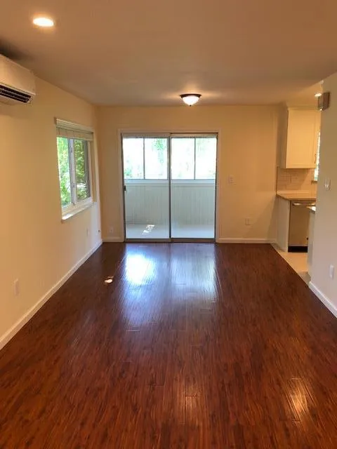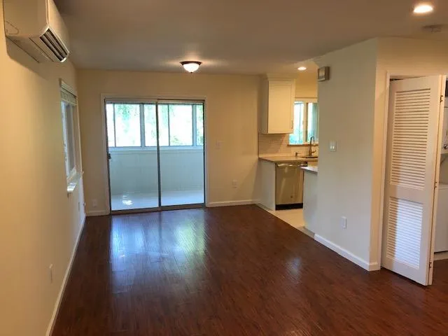This newly remodeled upstairs 1 bedroom, 1 bathroom unit of approximately 860 square feet has been beautifully renovated with laminate wood flooring, stackable washer/dryer, wall mounted AC/Heating unit, open living/dining concept, sun room facing the backyard, private entry up staircase, bathroom with shower/tub combination and new tile floor. Kitchen has all new stainless steel appliances (electric stove, microwave, dishwasher and fridge) with new countertops and wood cabinets as well. Internet/cable ready. Garage and backyard access is unavailable to this unit. Far left of the driveway available for one car for this unit. Faces Sunnyvale City Hall, library, court house and police/fire station (right across the street). *1 year lease term *No pets, no smokers *Recent credit report with FICO score *Last two pay period stubs or recent employment offer letter *Deposit and first month rent – cashier check only *Tenant pays gas, electric, water and trash