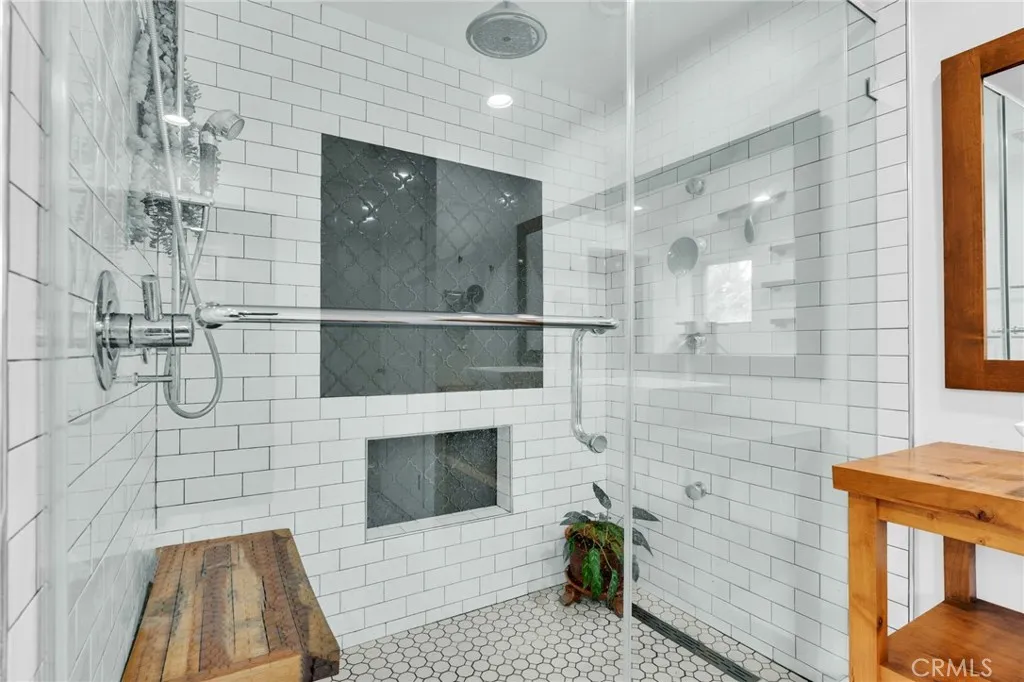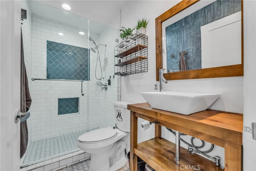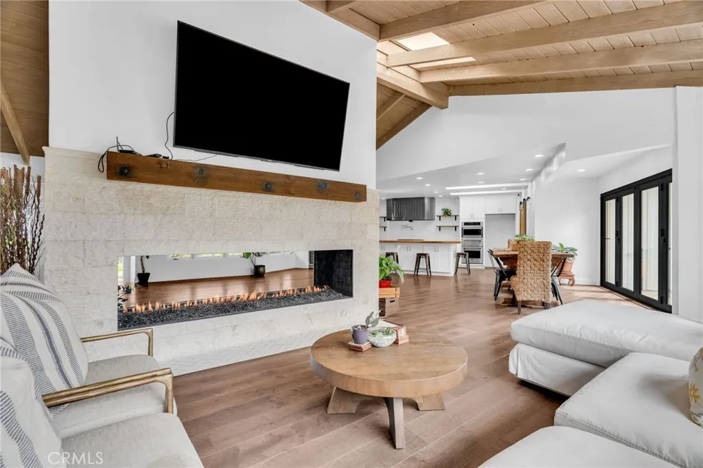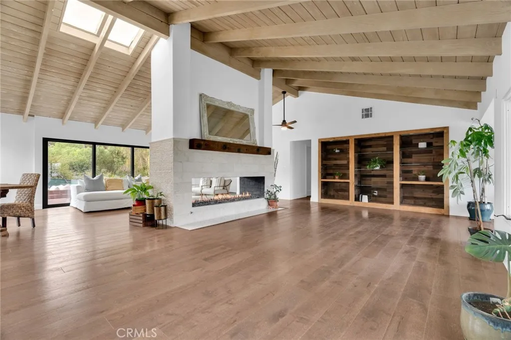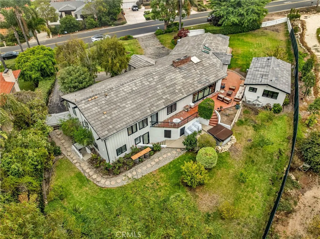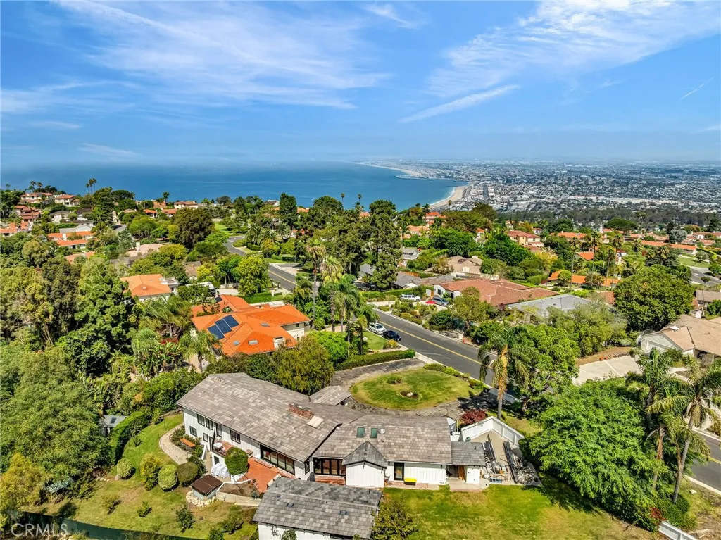 Welcome to this beautifully renovated home with a new guest house, located in the highly desirable Monte Malaga neighborhood of Palos Verdes Estates. This stunning residence offers a bright open floor plan with soaring beamed ceilings, expansive living areas, large windows and glass sliding doors to bring in abundant natural light; featuring a living room, family room, dual-sided see thru limestone fireplace from living room to family room, beautiful modern updated kitchen with quartz counter tops and a large center island, open dining area, large pantry, recessed lighting, ceiling fans, a two car garage and circular driveway. The home features 4 spacious bedrooms and 4 fully updated bathrooms. Three bedrooms including the main bedroom and bathroom are conveniently located on the main level, while the fourth bedroom and bath are privately situated downstairs with a separate entrance from the rear yard. The newly constructed ADU includes a modern kitchen, open living space, bedroom, bathroom, and washer/dryer closet—perfect for guests, extended family, or rental income. The main house is 4 bed 4 bath and approximately 3250 sf, the ADU is 1 bed 1 bath and 508 sf, and outside bath 60 sf. The expansive backyard is a true retreat with numerous fruit trees, a tranquil zen garden, an outdoor shed ideal for a craft room, outdoor showers, and ample space to add a pool. From the front of the property, enjoy peek-a-boo ocean and coastline views on clear days.