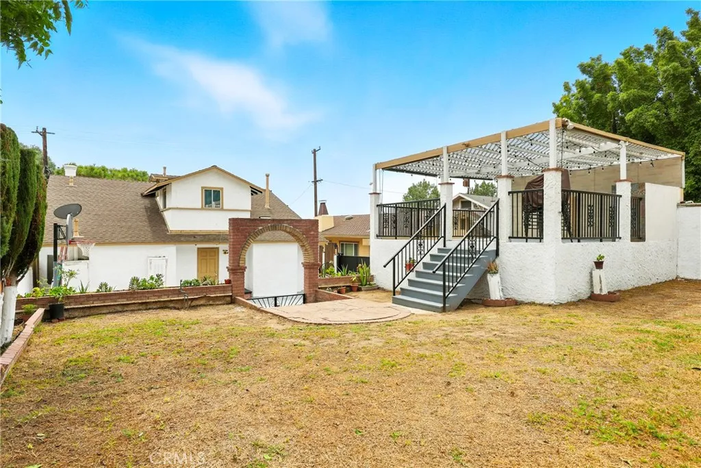 Portion of the back yard is nicely concreted & pavered so can park multiple cars. The 2 car garage at back of home is spacious and above the garage is a Rooftop Terrace with built in BBQ, great for entertaining families, friends & guests. To enter the RoofTop Terrace, one enters the last archway to more back yard space, large enough to add a pool if desired. To the left side of the home at ground level, there is also a 1 car garage and above it is a elevated yard. Perfect to put in artificial grass to give it the garden look. Right side also have 3 elevated yards, the top one being the patio area in front of the porch, the middle one is currently a garden, & the first one could be used for a garden as well or use it for whatever imagination that comes to one’s mind during Halloween or Christmas times.