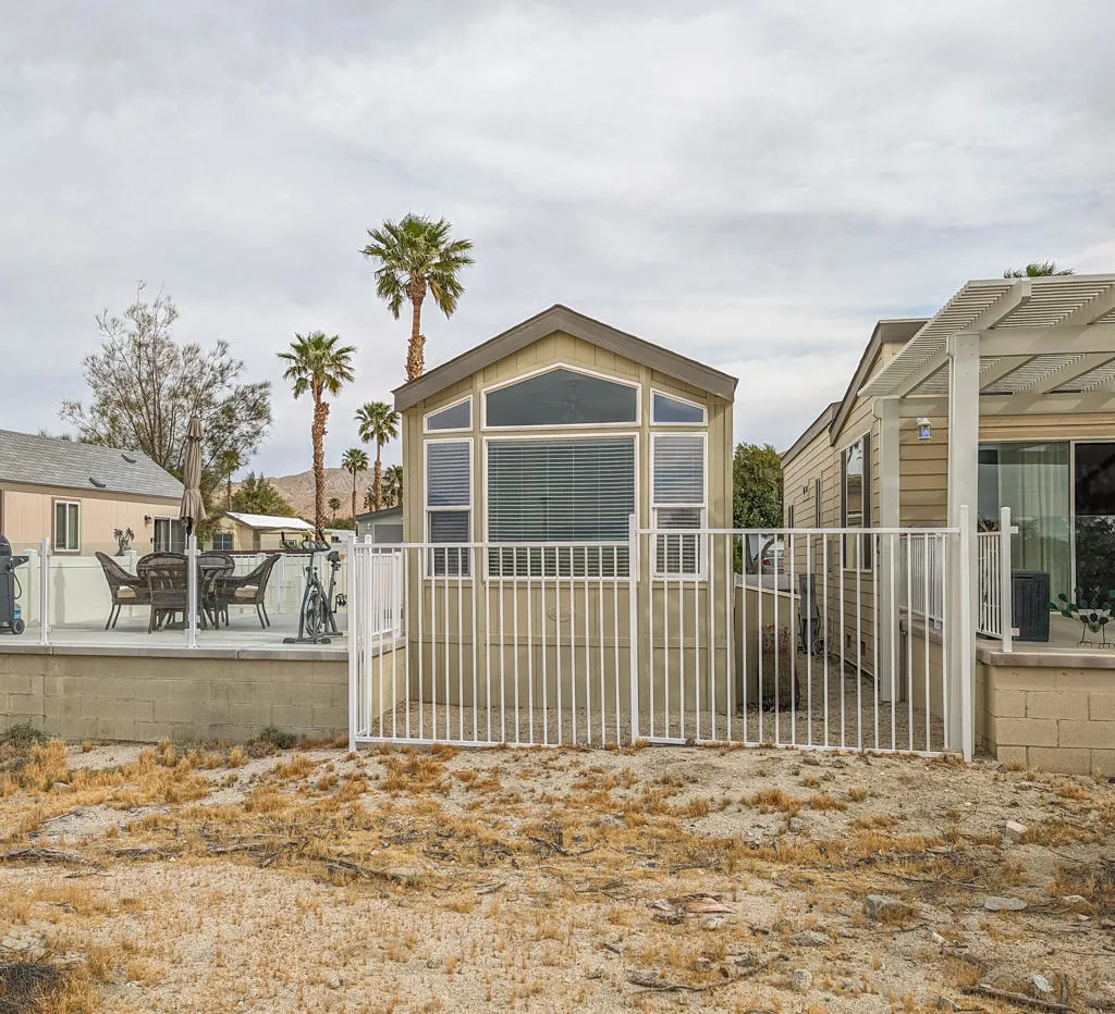 Spectacular and prime location close to the Clubhouse with this 2006 ~400 sq. ft. Laurel Crest Park Model home with sweeping and unobstructed views of Mt. San Jacinto. Come find your vacation getaway to the sun and desert with this immaculate, efficient, and well-maintained 1 bedroom, 1 bath, travertine flooring throughout, modern finishes, and volume ceilings. Sunbathe on your deck surrounded by glass railing for viewing pleasure to take in all the magnificent beauty and desert scenery, additionally, a finished shed with possible washer/dryer connection and a new HVAC system. This jewel is in the premiere Caliente Springs 55+ Resort and offers top notch amenities to soothe your every desire including mineral hot spring fed pool and spas, fitness center, 9-hole golf course, 8-pickleball courts, tennis courts, full laundry facilities, library, chapel services all in a fun and active community. Bring offers, make new friends, and call this home. Lot is not owned; space rent is $811 (subject to change). Easy lender financing (OAC).