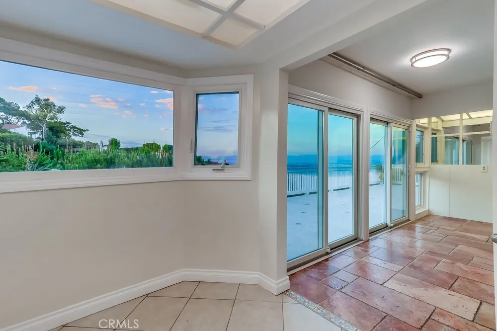Charming single-level home perfectly situated in the desirable Red Tile Roof neighborhood of Miraleste. Step inside to find warm cherry hardwood floors and abundant natural light streaming through Andersen windows. Both the living room and primary bedroom open through sliding glass doors to an expansive patio, where sweeping canyon and city views set the stage for unforgettable entertaining or peaceful evenings under the stars. A serene water feature in the side yard, visible from the living room, enhances the sense of peace and harmony that defines this home. The kitchen features granite countertops, tile flooring, a double oven, and a professional-grade six-burner stove. The guest bathroom has been enhanced with a newly installed double vanity, bringing both convenience and style. Beyond the interiors, the grounds are a lush sanctuary. An edible landscape of peach, apple, guava, lemon, pomegranate, avocado, fig, pear, and mulberry trees, along with vibrant lemon grass, provides a fragrant, colorful, and fruitful setting year-round. The front gardens deliver striking curb appeal, while the expansive side yard and driveway allow ample room for recreational toys or additional vehicles. Home exterior and interior freshly painted throughout includes forced air heating and cooling and is only a 5 minute walk to the Miraleste Plaza.