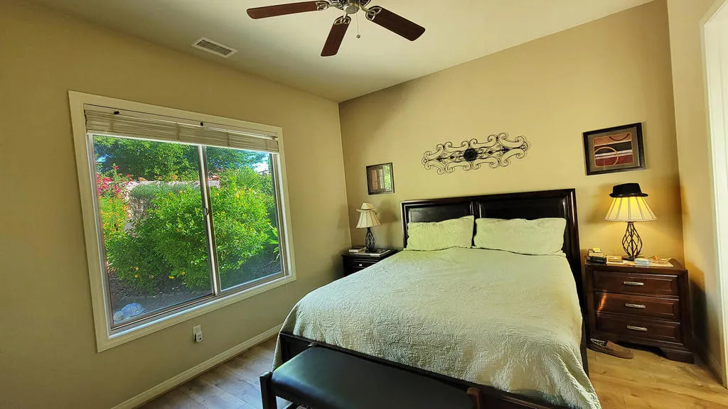 Welcome to Sun City Shadow Hills – Fully Furnished (with exclusions).Step into this beautifully maintained home featuring high ceilings, ceiling fans, custom cabinets, stylish tile and laminate flooring, slab granite countertops, and a spacious walk-in closet. Enjoy the tranquility of a serene backyard, perfect for relaxing or entertaining. Located across from a peaceful greenbelt, you’ll love the added privacy–no neighbors directly in front, just beautiful open space with a park-like view.This home offers more than just comfort–it offers lifestyle. The lush, low-maintenance landscaping lets you enjoy the outdoors without the upkeep. Inside the gated community, you’ll benefit from lower HOA fees and Imperial Irrigation District electricity rates, keeping your monthly costs in check.Sun City Shadow Hills features:2 Clubhouses2 Bistros & a RestaurantTennis, Pickleball, and Bocce Courts2 Fitness Centers1 Indoor Pool & 2 Outdoor Pools/Spas2 Dog ParksA Challenging 3-Par Golf CourseDozens of Clubs & ActivitiesFor just $369/month, HOA includes guarded gates, security patrols, internet, and access to all amenities. This lovingly cared-for home is ready for you–move in and start enjoying the easy, resort-style living today!