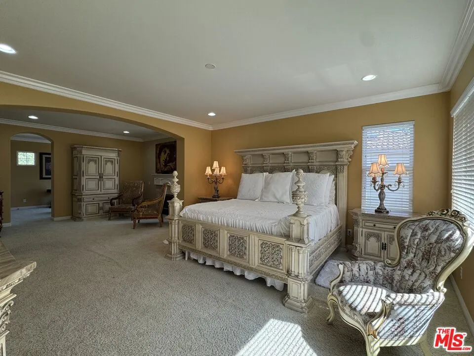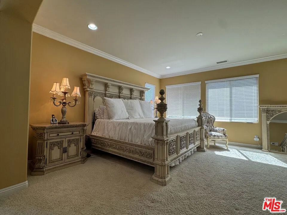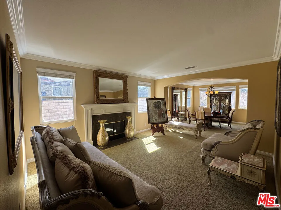 Honey, Stop the Car! This massive 5 bedroom, 5.5 bath home welcomes you with a grand foyer and dual staircases. The main level features a formal living room, formal dining room, private office, spacious family room, and a convenient downstairs bedroom with its own bath. The gourmet kitchen is an entertainer’s delight, offering granite countertops, a large island, walk-in pantry, stainless steel appliances, cherry cabinetry, and a semi-custom refrigerator. Moving upstairs, there is a large loft/flex space ideal for work, study, or play, along with a luxurious master retreat complete with its own fireplace and private study. The spa-inspired master bath showcases dual vanities, his and hers closets, granite countertops, marble floors, and dual shower heads. Every bedroom is complete with a walk-in closet. The open floor plan is elevated with elegant crown molding. Outside, enjoy plenty of parking and a generous backyard with endless possibilities including ample space for a pool and the opportunity to create your own private oasis. Situated in a picturesque neighborhood with no HOA and within a highly sought-after school district, this home is close to Santiago High School, Centennial High School, and El Cerrito Middle School, as well as shopping and dining. With just a little imagination and personal touch, this will truly become your dream home. Welcome Home!