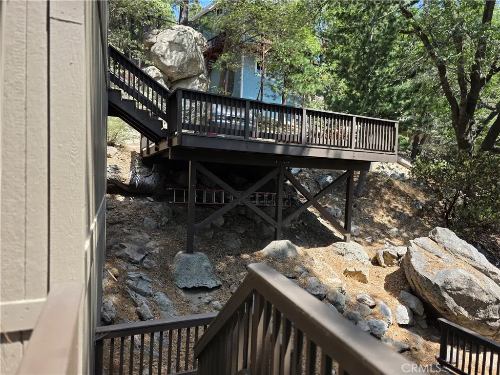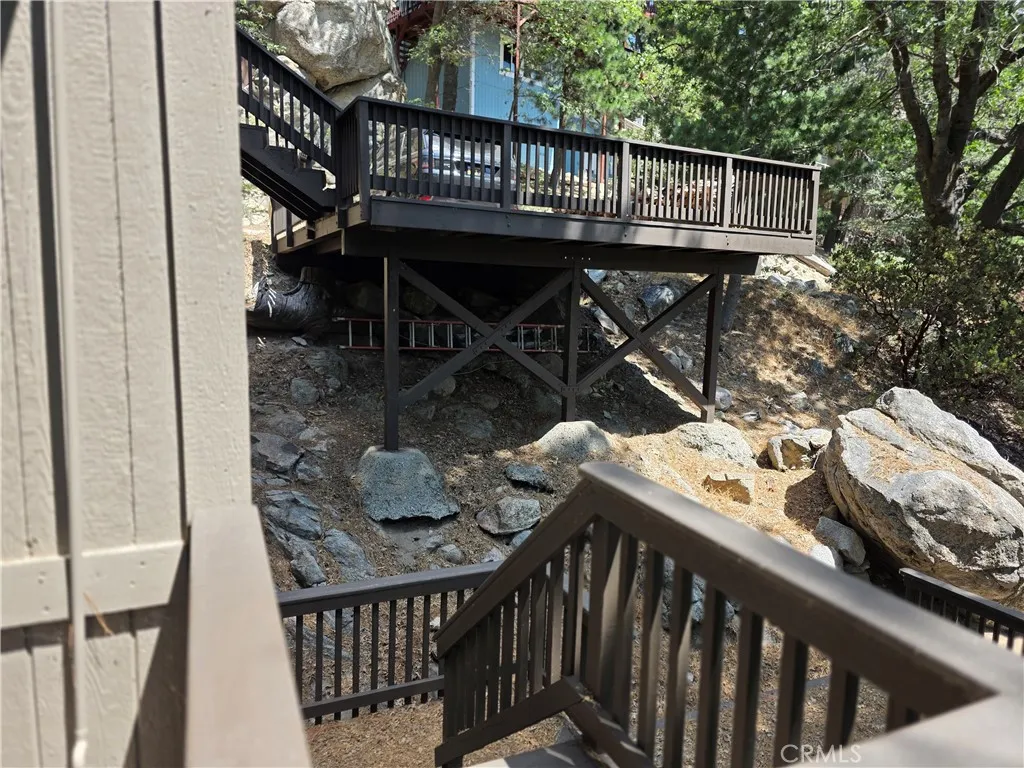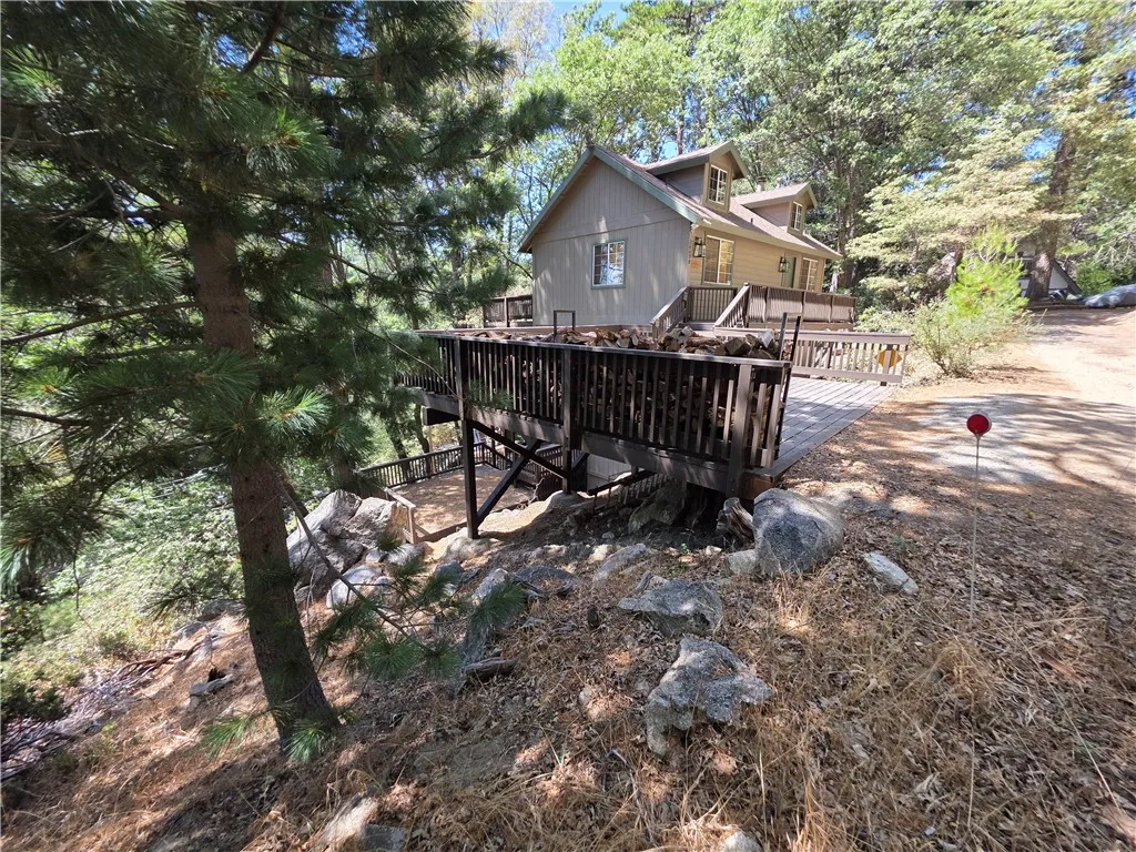 Welcome to this inviting 3 bedroom 2.5 bathroom home located in Lake Arrowhead. Enjoy a cozy living room with a fireplace, perfect for mountain evenings, and a spacious kitchen with an adjacent bathroom and laundry area for convenience. Step outside onto the deck off the living room, ideal for entertaining or relaxing among the trees. This home sits on an oversized lot with a fenced yard area. Home also has parking for 2 cars on the parking deck. With lake rights included you will have access to the best of Lake Arrowhead living.