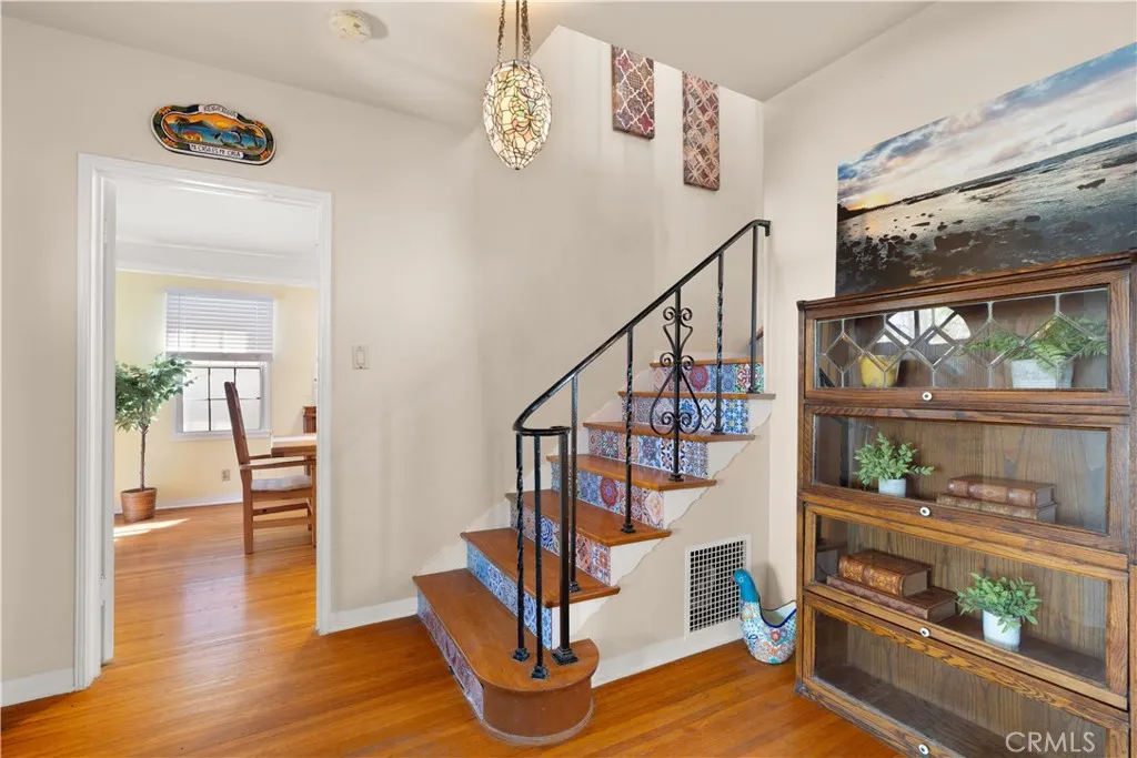 DON’T MISS OUT ON A FABULOUS HOUSE BECAUSE IT’S ON GAFFEY! HOME SITS HIGH ABOVE THE STREET! CLASSIC HOME AND AN UNOBSTRUCTABLE VIEW! This timeless 1937 Spanish-style home captures sweeping views of the Los Angeles Harbor and the iconic Vincent Thomas Bridge. Arched windows and classic architectural details set the tone, while original hardwood floors add warmth and character throughout. The spacious living room features coved ceilings, and a wood burning fireplace with an oak mantle and stone facing as its centerpiece. Many windows bathe the space in bountiful sunlight and harbor views can be seem from almost every room in the house! With over 1,700 square feet, the floor plan is both generous and functional. The large formal dining room flows into a beautifully remodeled kitchen, appointed with hickory cabinets, granite countertops, stainless steel appliances (including a French door refrigerator), and a convenient wet bar/prep sink. A built-in office nook and a garden window overlooking the lush backyard add both style and utility, while the adjacent laundry room provides even more storage and pantry space. An updated ¾ bath completes the first level. As you make your way up the winding staircase with its original iron railing, you’ll find two spacious bedrooms – one with dual closets, including a walk-in! There is also an updated full bathroom. A versatile bonus room (perfect for a nursery, office or creative space) opens to a shaded veranda overlooking the backyard. The backyard is a true retreat—boasting a mature avocado tree heavy with fruit, a wide grassy area, a large entertaining deck, and a Tuff Shed for extra storage. Alley access to a two-car garage completes the property. Over time, this property has been updated with dual pane windows, newer FAU, water heater (2021), and even drain and sewer line upgrades. There is added storage in the (easily accessible) basement. Surrounding new construction can only increase your home’s value! This property is well located close to everything you need, and not far to the Marina, Cabrillo Beach, AltaSea, Cabrillo Marine Aquarium, Crafted and so much more! The main attraction is the upcoming West Harbor waterfront, with new restaurants, shops, an amphitheater and even a Ferris Wheel! This home blends historic charm with thoughtful updates, all in a hillside setting with amazing harbor views. **THIS PROPERTY QUALIFIES FOR A $20,000 COMMUNITY GRANT PROGRAM THROUGH CITY NATIONAL BANK’S LADDER-UP PROGRAM**