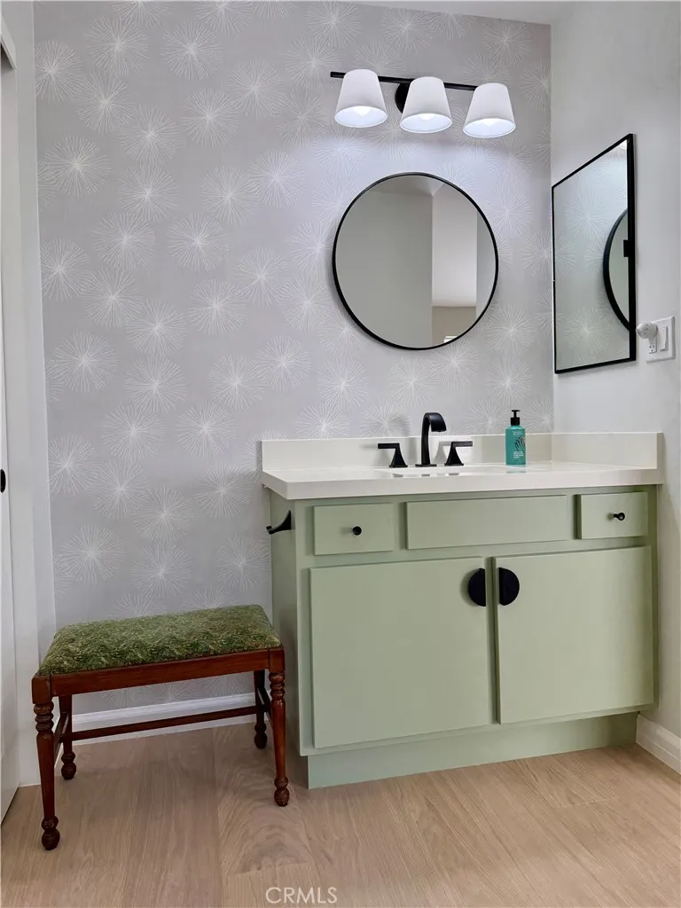 The kitchen is a centerpiece, opening to a spacious private patio for easy entertaining. Custom cabinetry, new appliances, and a thoughtful layout highlight its functionality, while wide plank oak floors, hand-finished copper accents, Kohler fixtures, and curated mid-century details bring a sense of craftsmanship rarely found today. Throughout, 9’ ceilings and abundant natural light enhance the airy, modern design.