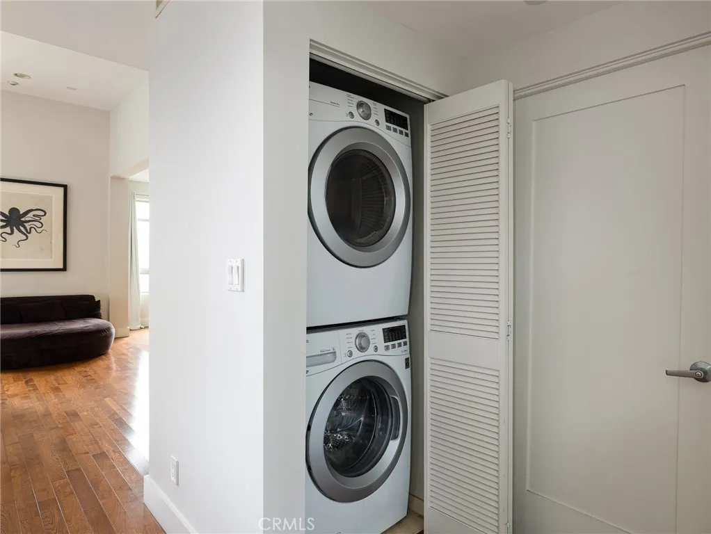 This beautifully updated 2 bedroom, 2.5 bathroom home offers just under 1800 sq ft of thoughtfully designed living space. The main level features new vinyl plank flooring, a private bedroom with an en-suite bathroom as well as two additional flexible spaces that can be used as a family room, office space, and/or a garage. The second floor showcases hardwood floors and an open-concept layout between the spacious kitchen and living room, complete with an electric fireplace. The kitchen itself has a large island, wine fridge, dishwasher, and plenty of storage.The spacious primary suite features a walk-in closet, a dual vanity bathroom, a large shower with seating, and a private balcony. A convenient half bath and stacked laundry are also located upstairs. The updated stairwell off the living room leads to a brand-new private deck with gas and water lines and electrical outlets—ideal for entertaining. Additional highlights include a new A/C unit, new Milgard windows, plenty of parking in the garage and/or carport, and ample storage under the stairs.
