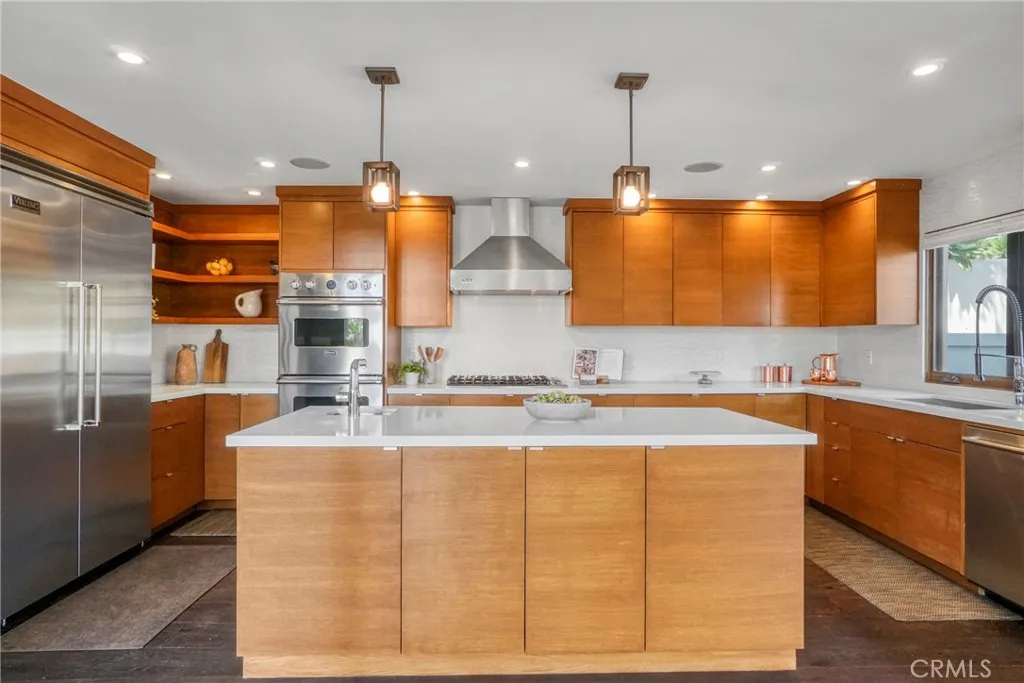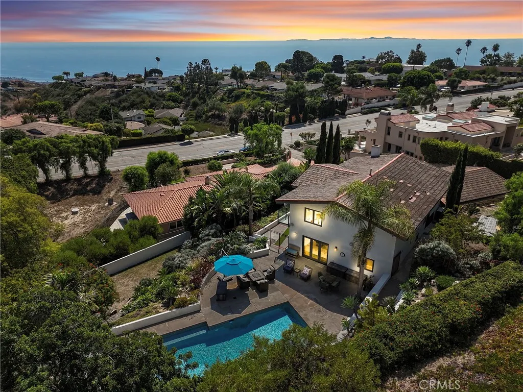 Beautiful and Stunning Custom Contemporary Ocean View home located on top of a private drive well above the street. This three bedroom, three bath with an additional first floor office that doubles as a fourth bedroom artist’s home features authentic wood floors, vaulted ceilings, a spectacular open floorplan, glass second floor cat-walk, a modern solid wood kitchen with professional stainless steel Viking Pro appliances, quartz counters, double sinks, a separate utility room, a three car garage with EV NEMA 14-50 charging, central A/C, all on a usable large lot! This home was meticulously remodeled to the finest standards to create a completely usable home and yard that flow seamlessly. The great room wall of glass opens to the handsome oversized pool and fountain spillway spa, a large patio for entertaining and private terraced Lombardy deck surrounded by mature junipers. The three additional ocean and harbor view bedrooms are upstairs, The huge primary walk-in closet is almost as large as the primary bedroom itself, tons of natural light and two with their own Verona balconies with glass railings. On a clear day you can see all the way past Newport Beach. The third car garage stall is currently set up as a home gym with zone A/C and heat. It can easily be converted back. This home has designer touch overload. Don’t miss out on this unbelievable difficult to find Palos Verdes, Spanish contemporary masterpiece.