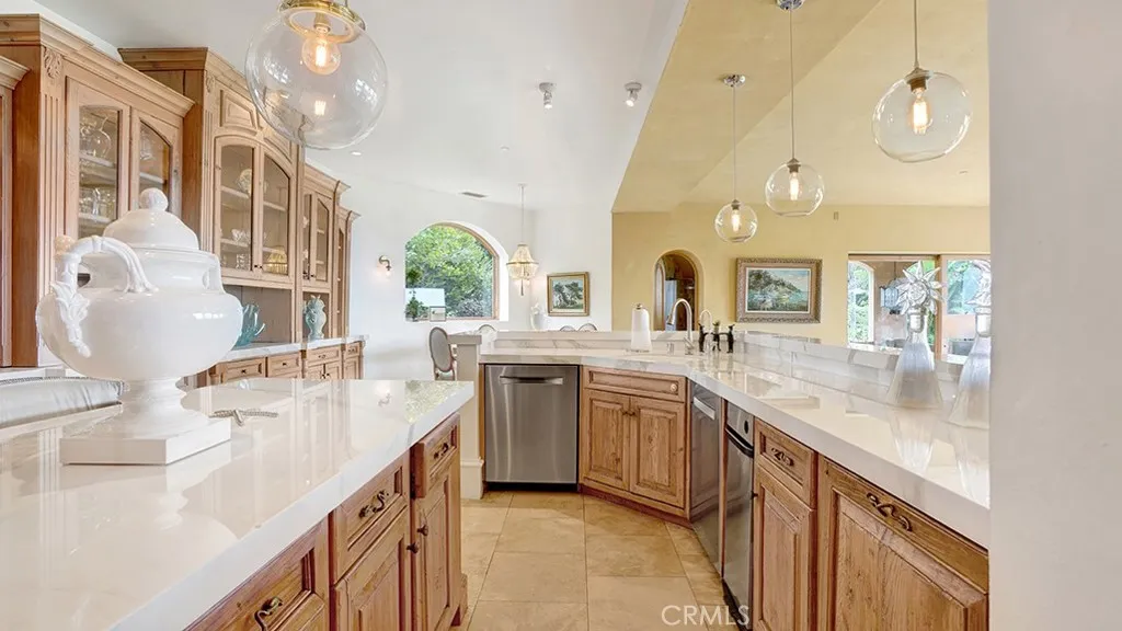 Two thirds of an acre on the FRONT ROW OCEANFRONT – ONE OF A KIND IN RITZ COVE! Welcome to an elegant oceanfront estate in Ritz Cove, the only beachfront community between the Ritz-Carlton and the Waldorf Astoria Monarch Beach Five-Star Resorts. Positioned on the largest lot in the enclave—over two-thirds of an acre—this home enjoys an extraordinary 110 feet of ocean and Catalina facing frontage and the privacy of a double-lot width. There is no neighbor on one side, just garden, grass and a sitting area…so the feeling of privacy is immense. With approximately 8,300 square feet, 5 bedrooms, and 9 baths, this residence was designed for rare coastal living. The subterranean garage accommodates up to six cars, a true luxury along the coast, and a rarity for an oceanfront home. An elevator serves all three levels—a distinction, as homes in many areas of OC are restricted to only two stop elevator service. Additionally, one of the bedroom suites has its own private exterior entrance, which is ideal for a guest apartment, ADU, or quarters for a nanny, chef, live-in family member or caregiver. The ceilings in this separate room are over 11’ high. The lower level family room can easily serve as a large Media/Cinema Room/Movie Theatre! A private cul-de-sac setting and a 90-foot setback from the street creates serenity and exclusivity. The lush garden, with roses, peaches, lemons, limes, boysenberries, Fuji apples, palms, and grapes, offers a rare oasis by the sea. Step through your private beach gate and onto the world-renowned Salt Creek Beach path, steps from white sand, dolphins, surfers, and nightly sunsets over Catalina. Inside, the home reflects a timeless, soft Tuscan style with hand troweled soft plaster walls and stone finishes. The main level hosts generous living and family rooms, a dining room, a library/office with two-story ceiling, kitchen, and several baths, including a surfer’s bath with a separate entrance and shower. Upstairs, four ensuite bedrooms include the primary suite with dual His-and-Hers separate bathrooms and showers. This is a huge perk!!! The lower level offers an additional bedroom and bath, game and entertainment rooms, laundry, and direct garage access. Sheltered slightly back from the Ritz Carlton bluff, the property benefits from natural wind protection. This rare estate embodies the best of privacy, elegance, and beachfront living in Ritz Cove.