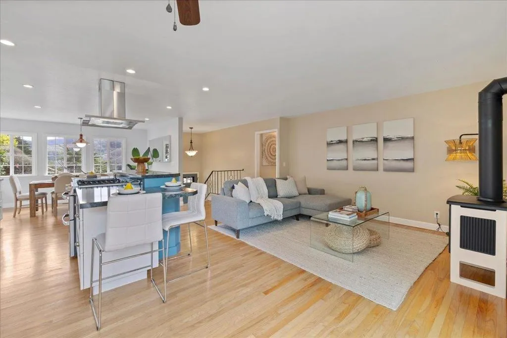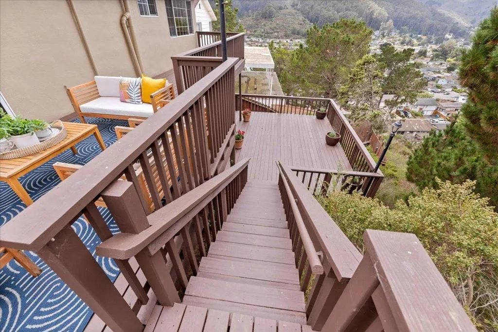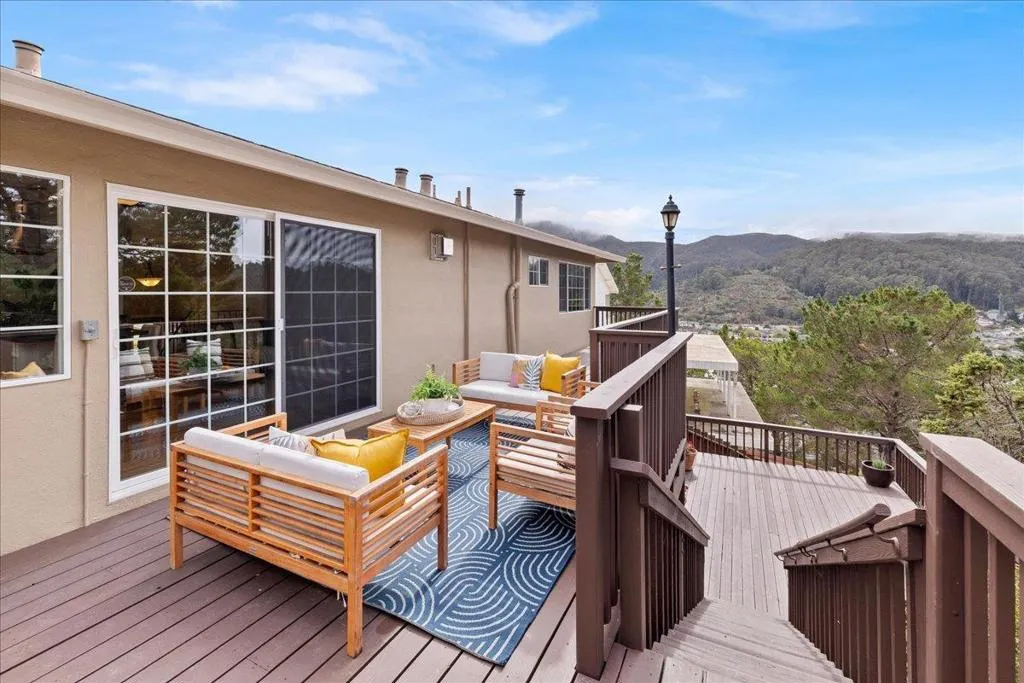 Welcome to this exquisite home nestled at the end of a tranquil cul de sac in the desirable Sun Valley Area of Pacifica. Enjoy breathtaking mountain and valley views from both the front and back of the home. Seamless access from open concept living area to stone patio in front as well as to dual decks in back allow you to immerse yourself in the serene surroundings. The heart of the home is its stunning remodeled island kitchen flowing into the living and dining areas making it perfect for entertaining and family gatherings. Stainless steel appliances, quartz countertops, custom cabinets and tons of natural light make this a chef’s delight. Three bedrooms and two updated baths round out the main living level. Downstairs, additional bonus rooms provide flexible living options; currently used as a family room, bedroom and bath not completed with benefit of permits.Large two car side by side garage also has laundry area an extra storage. Generous 7,548 square foot lot with lovely terraced garden; this property promises privacy and comfort. Don’t miss the opportunity to own this exceptional home!